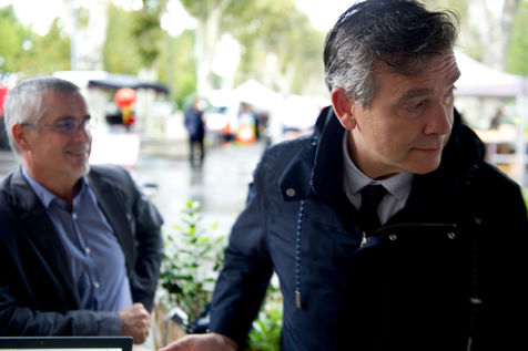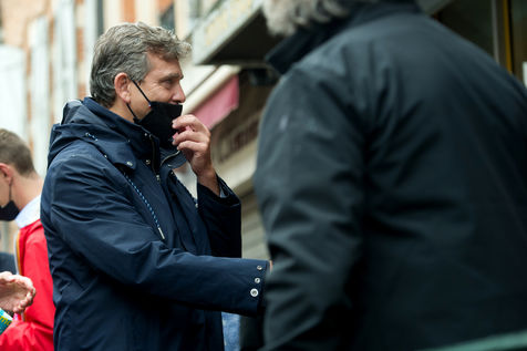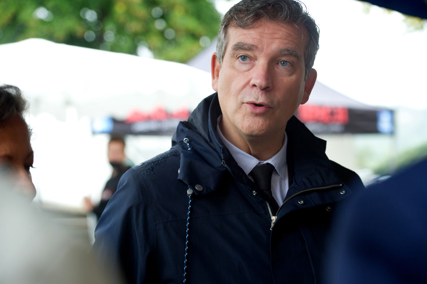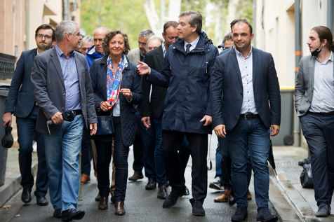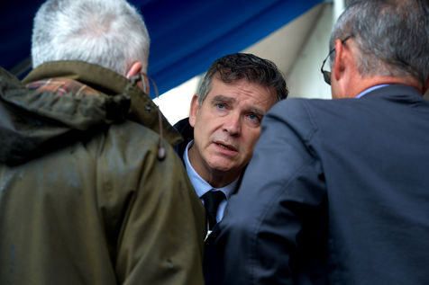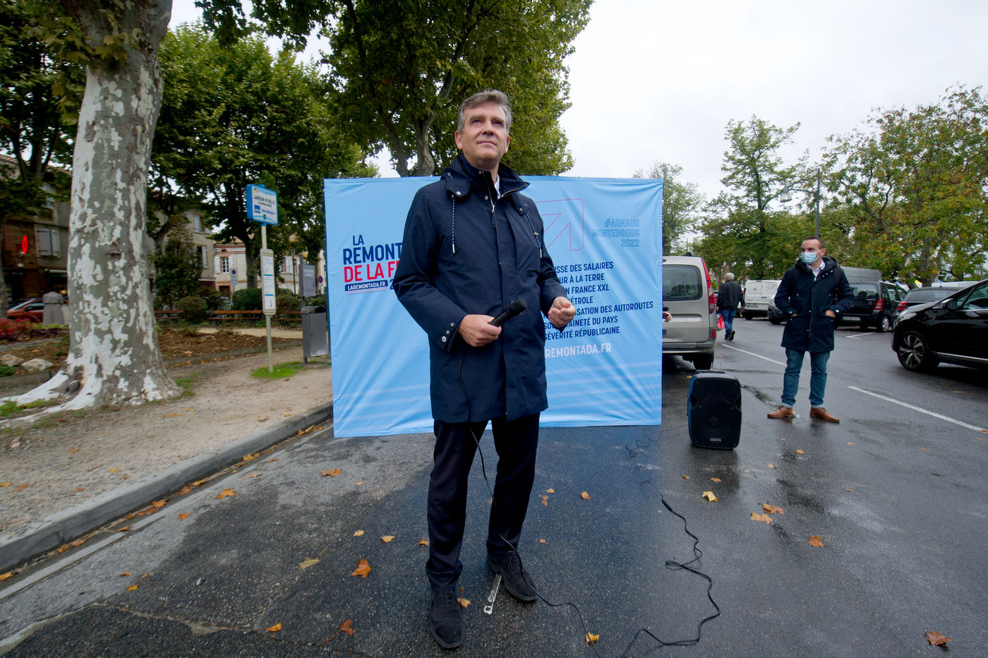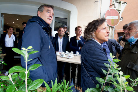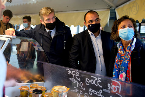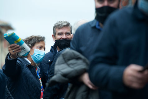Arnaud Montebourg, former Minister of Economy and former member of the Socialist Party, candidate for the presidential election of 2022, visits a market in the Haute Garonne.
