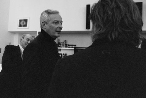 Portrait of Bruno Le Maire, Minister of the Economy, Finance and Recovery. A portrait taken with a Kodak TriX and a 24 mm camera, much more discreet than our big digital SLR cameras. During the minutes that follow, the minister almost forgets my presence, jokes and comments on the beginnings of the presidential campaign with the people present.