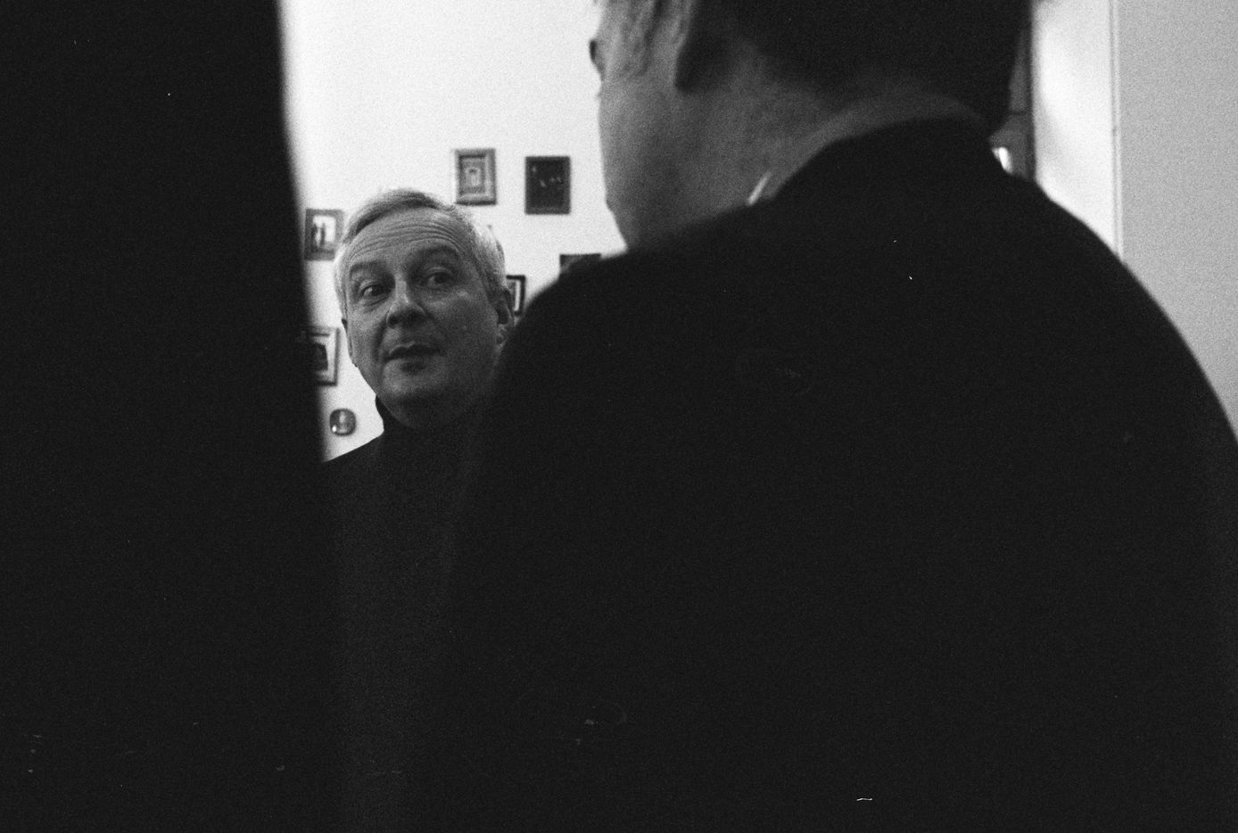 Un portrait réalisé à la kodak TriX et au 24 mm bien plus discret que nos gros boitiers reflex numérique. Au fil des minutes qui suivent le micro tendu, le ministre oubli presque ma présence, plaisante et commente les prémices de la campagne présidentielle avec les personnes présentes.