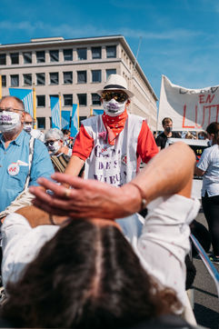 The health care personnel parade through the streets of the capital and demand more means for health care.
