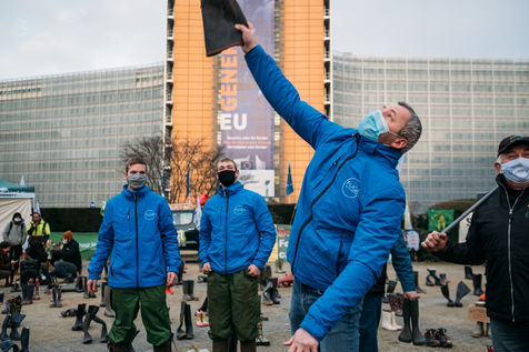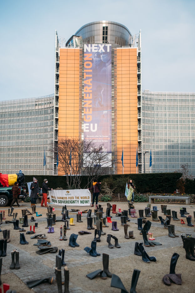 Every week, dozens of peasant farms disappear in Belgium because they are not supported by ambitious policies. Yet peasant agriculture can feed us AND cool the planet, an untenable wager for industrial agriculture. On December 8th, hundreds of pairs of boots will be installed in Schuman to represent all the peasants that Europe has abandoned.