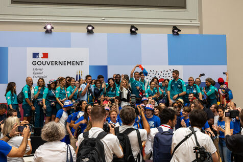 Etait organisé par l’Etat un temps fort de reconnaissance, réunissant l’ensemble des acteurs fédéraux mobilisés pendant les Jeux en présence notamment de la présidente du CIO et du Président de Paris 2024. Des athlètes médaillés, 34 représentants des fédérations olympiques et paralympiques ainsi que des volontaires des Jeux de Paris 2024 et du Club France étaient également présents.