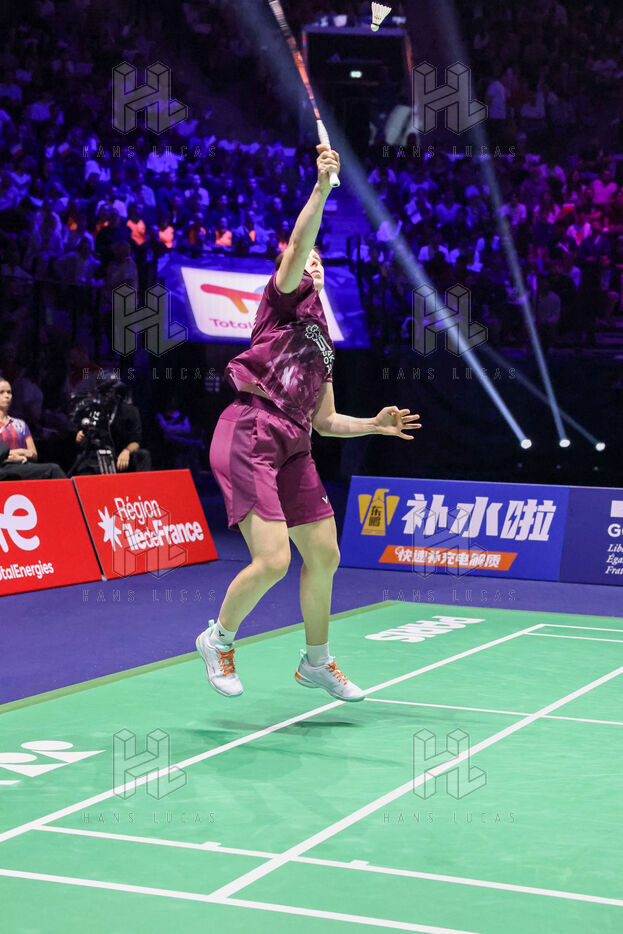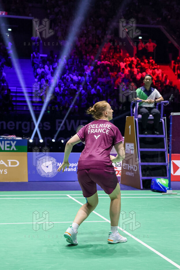Demie finale du double mixte opposant les français Thom GICQUEL et Delphine DELRUE contre les malaysiens Tang Jie CHEN et Ee Wei TOH au jour 6 des championnats du monde de badminton 2025.