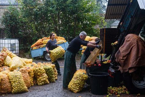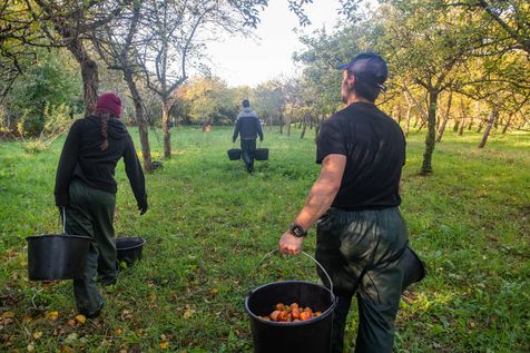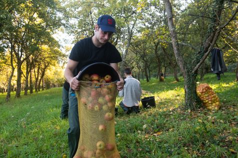 Hand picking and pressing of 50 tons of apples in the orchards of Kerdaniel, then pasteurization and bottling.
