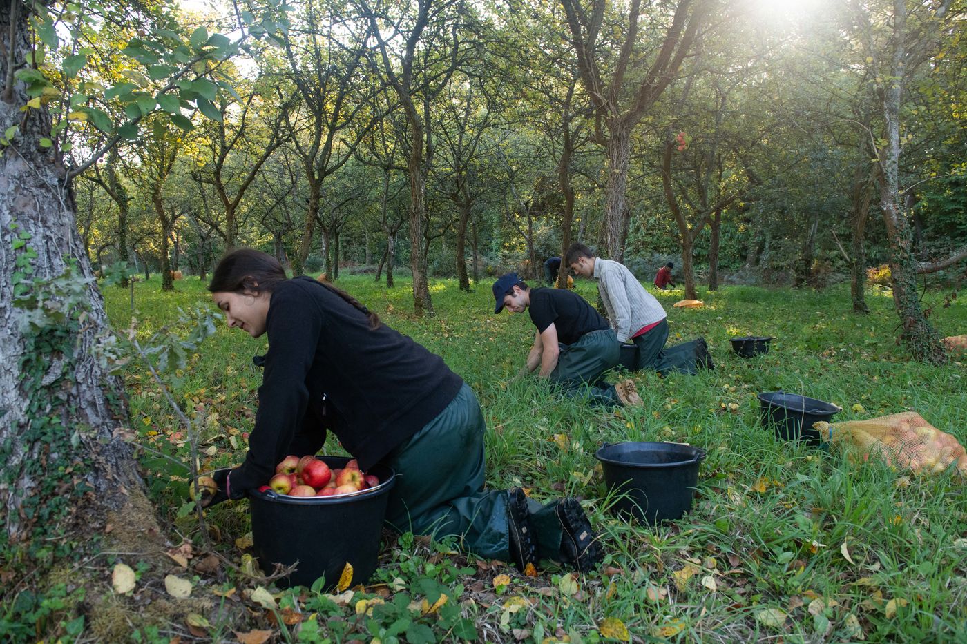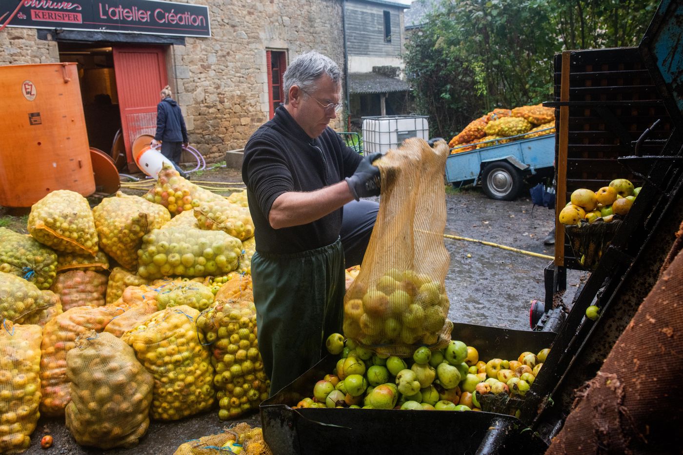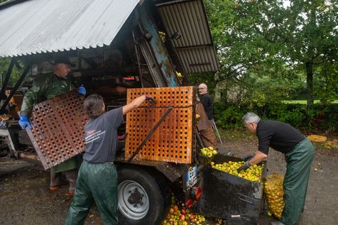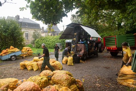 Ramassage à la main et pressage de 50 tonnes de pommes dans les vergers de Kerdaniel, puis pasteurisation et mise en bouteille.