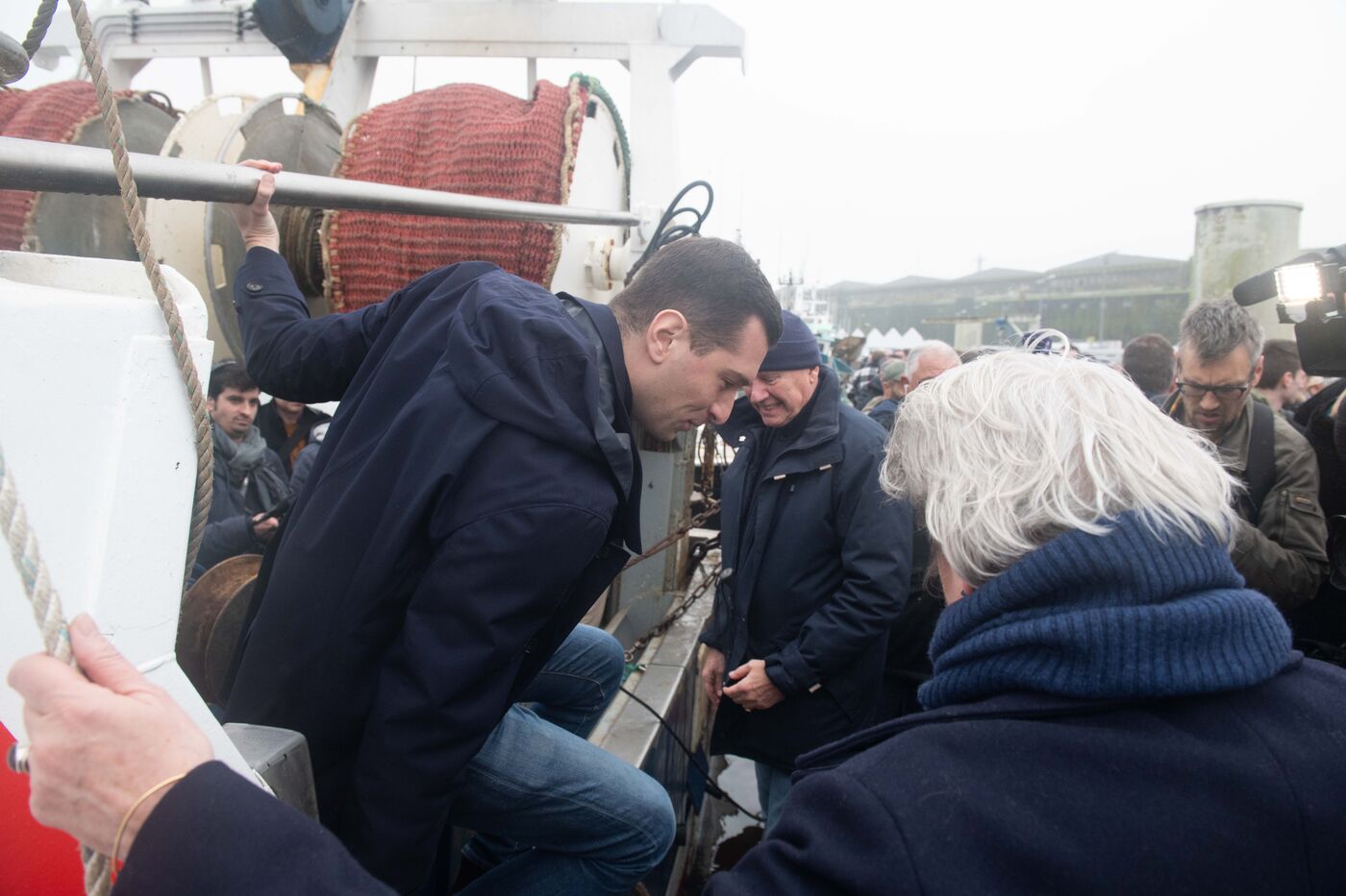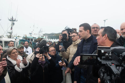 Jordan Bardella, President of the Rassemblement National (RN), came to meet fishermen in Lorient, Brittany's main fishing port. He was welcomed by David Le Quintrec, a gillnetter from Lorient, who explained to him, among other things, the constraints weighing on their activity, such as the month-long ban on fishing in the Bay of Biscay to preserve dolphins.