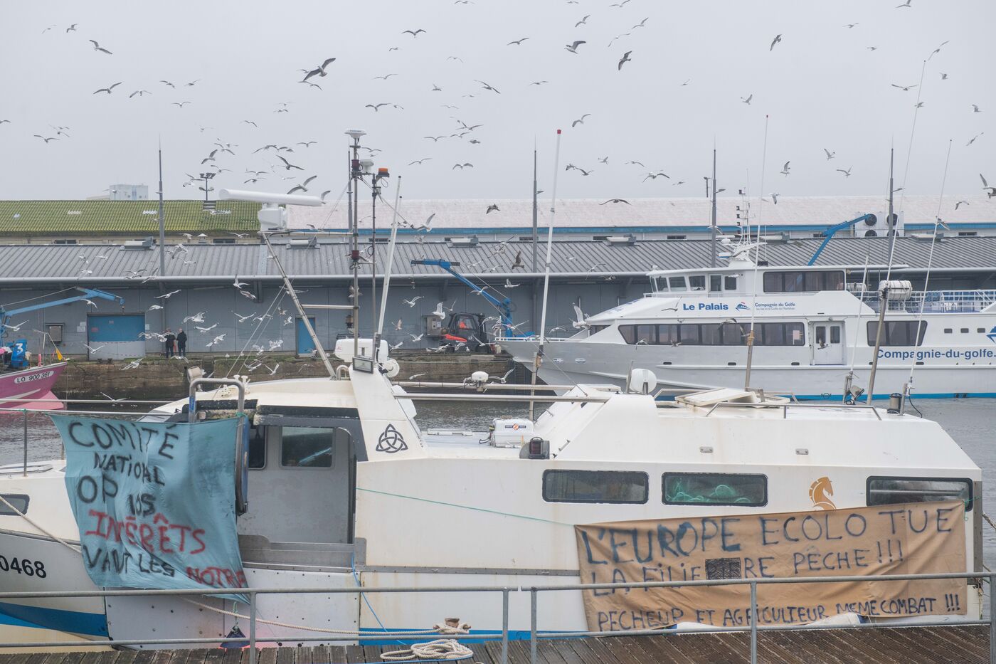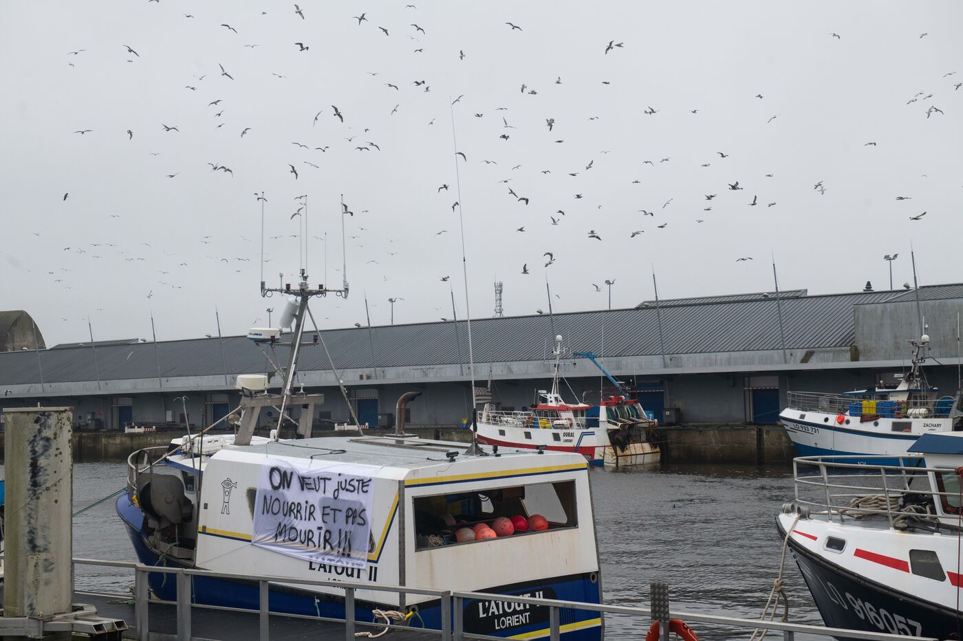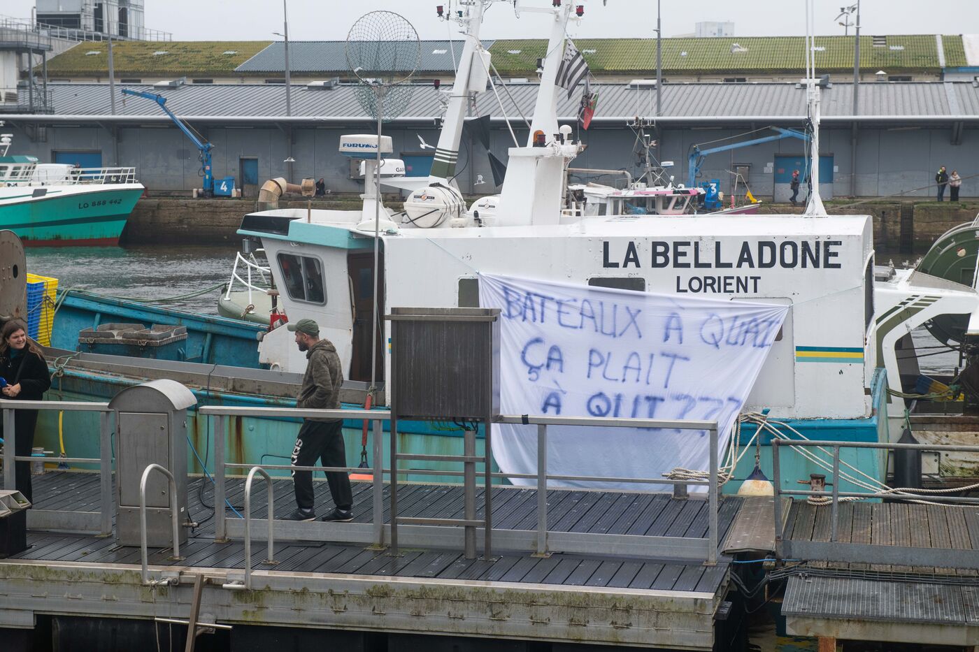 Visite de Jordan Bardella, président du Rassemblement National (RN), venu à la rencontre des pêcheurs à Lorient, le principal port pêche de Bretagne. Il a été accueilli par David Le Quintrec, un fileyeur lorientais qui lui a expliqué en autres, les contraintes qui pèsent sur leur activité comme l'interdiction de pêcher pendant un mois dans le golfe de Gascogne pour préserver les dauphins.