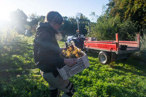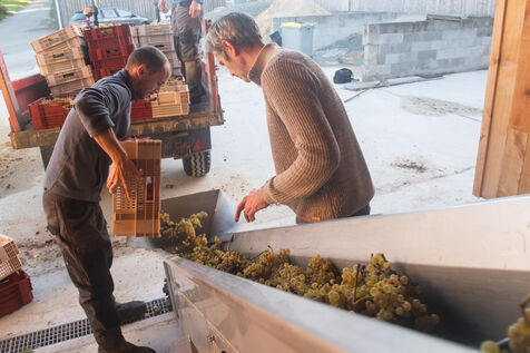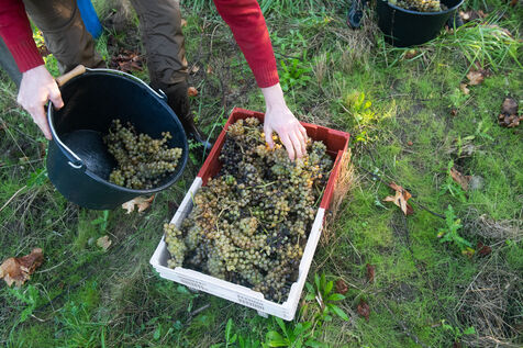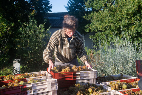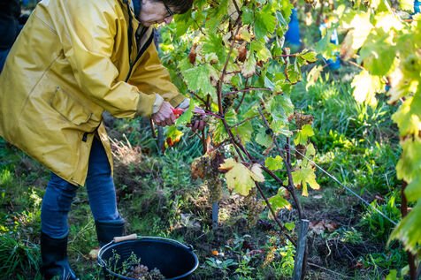 Attendues avec impatience, les vendanges fin septembre 2024 concernent les 13 000 pieds plantés il y a trois ans par Aurélien Berthou, sur 2,5 hectares de terres louées auprès du lycee Kerplouz ou il est lui même formateur en viticulture. Soreli et Muscaris, deux cépages donnant un vin blanc sec et qui devraient permettre la production de 4 à 5000 bouteilles cette année, le vin en Bretagne est lancé !