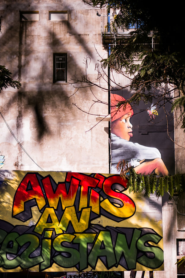 Kolektif Awtis Rezistans. Depuis cette date, nombreux artistes se sont exprimés sur les murs de ce batiment désaffecté.