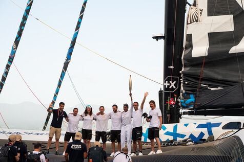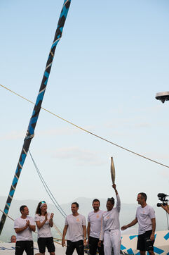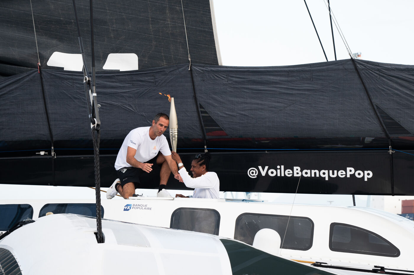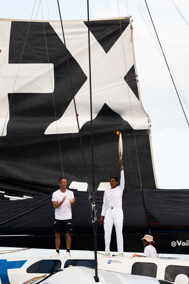 Après 8 jours de traversée de l'Atlantique, le Maxi Banque Poupulaire XI arrive en Guadeloupe au Mémorial Acte de Pointe-à-Pitre, avec à bord Marie-José Pérec qui portera la Flamme Olympique afin de partager les valeurs de l'olympisme sur son île.