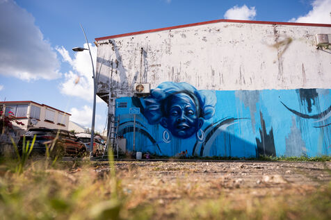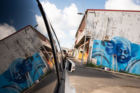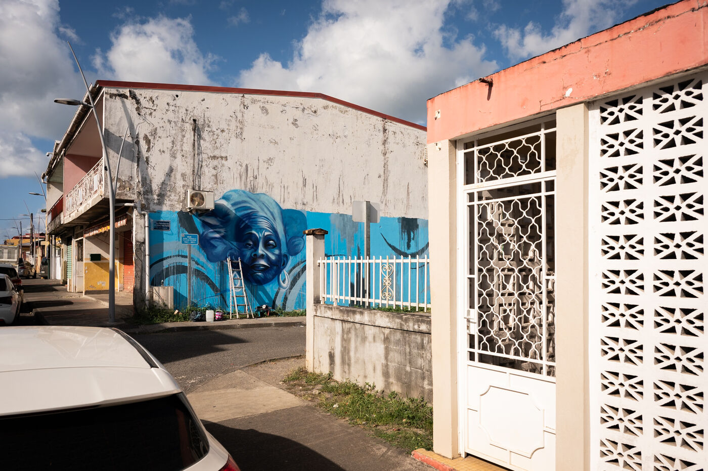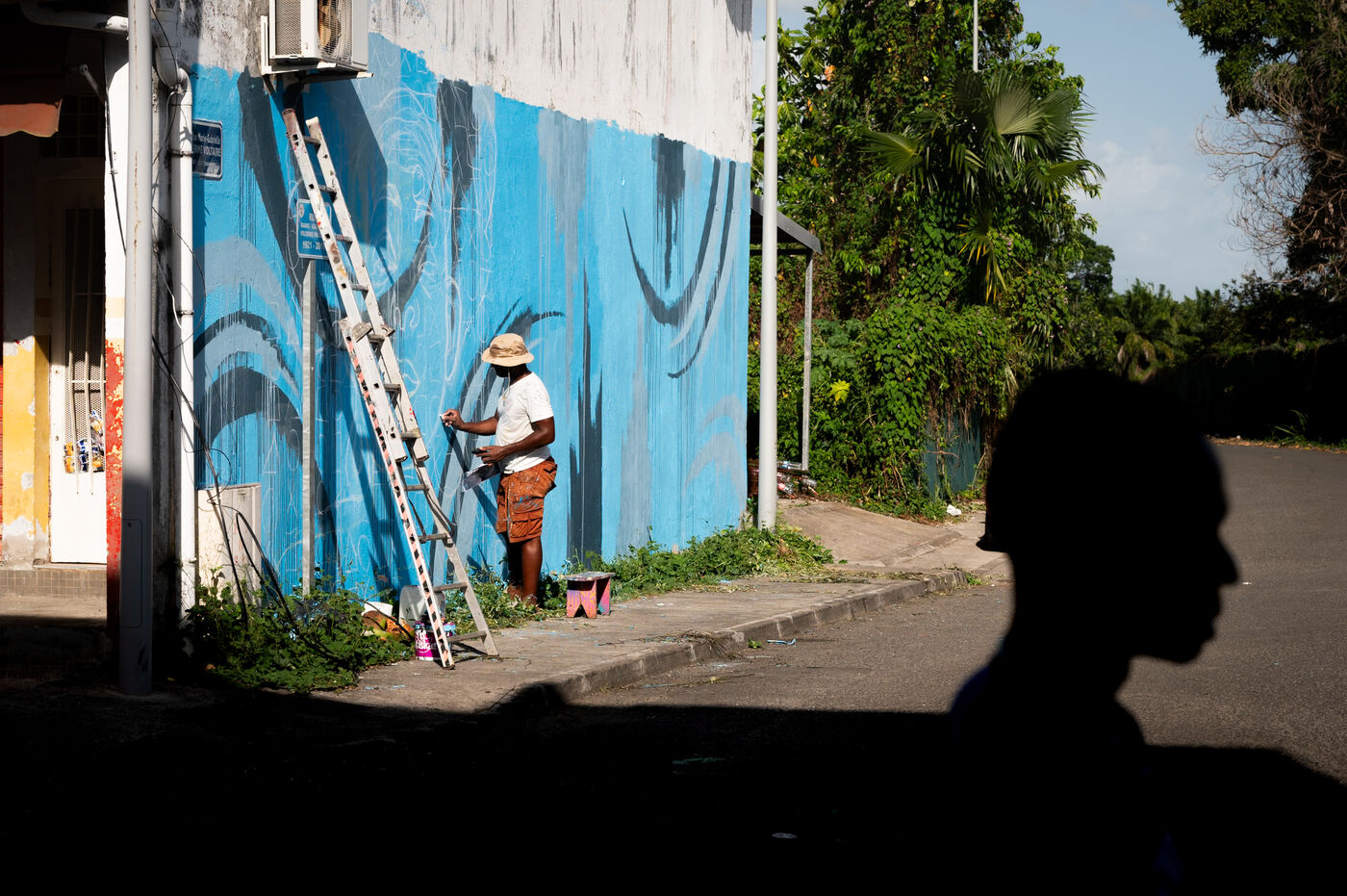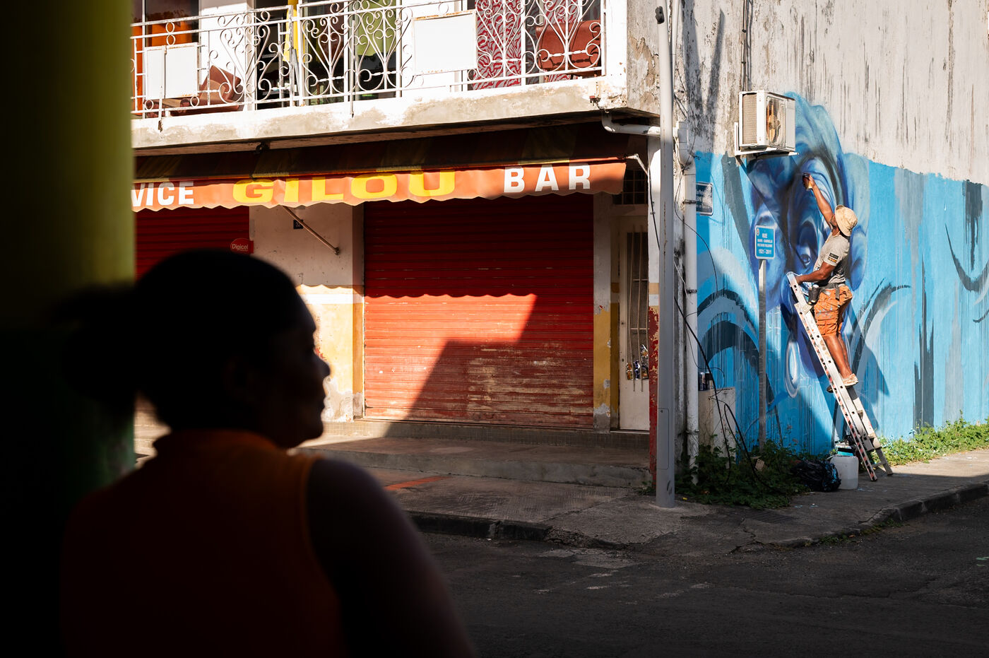 In Guadeloupe, decrepit walls and hollow spaces are not uncommon and tarnish the island's urban landscape. Guadeloupean artist and graffiti artist Macfa is creating a fresco on a decrepit wall to help beautify and improve the living environment in Baie-Mahault. This initiative, like that of his fellow graffiti artists, is based on a personal and voluntary commitment, after having contacted the owners of the walls, and has been warmly welcomed by the residents, who are rediscovering their neighborhood with a new and curious outlook.