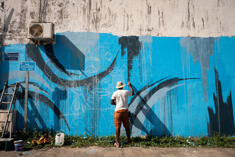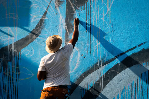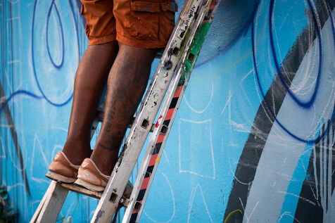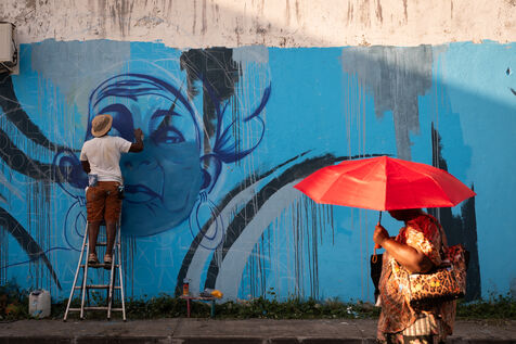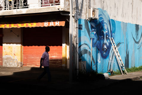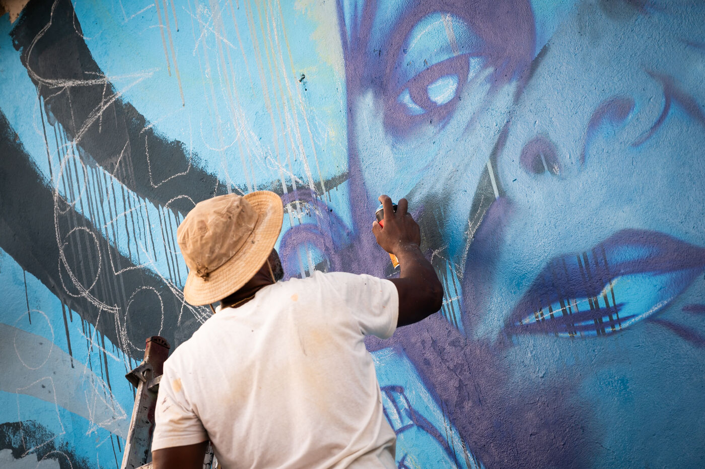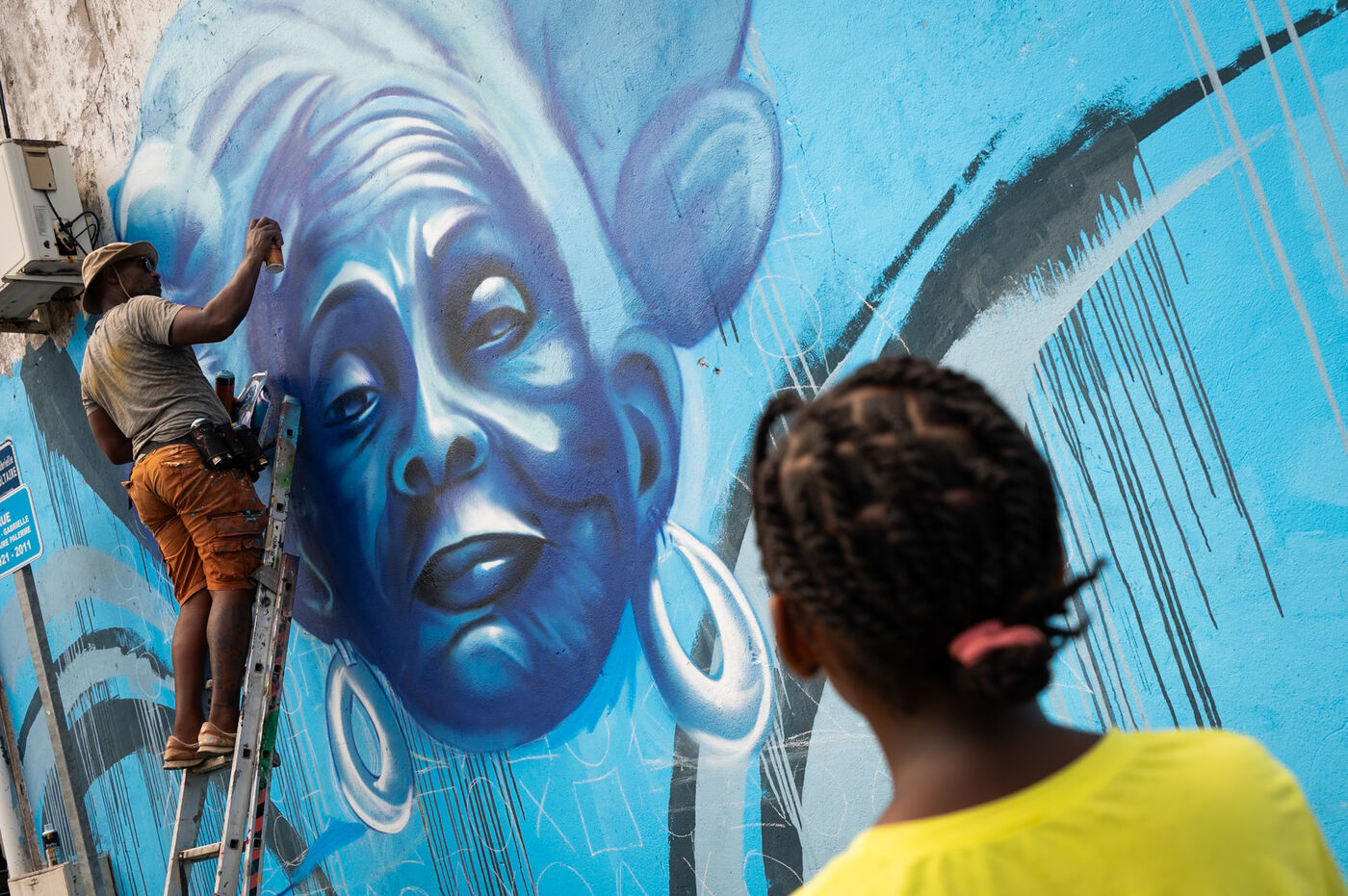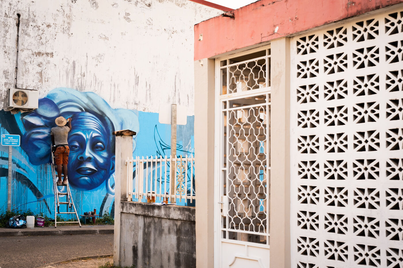 In Guadeloupe, decrepit walls and hollow spaces are not uncommon and tarnish the island's urban landscape. Guadeloupean artist and graffiti artist Macfa is creating a fresco on a decrepit wall to help beautify and improve the living environment in Baie-Mahault. This initiative, like that of his fellow graffiti artists, is based on a personal and voluntary commitment, after having contacted the owners of the walls, and has been warmly welcomed by the residents, who are rediscovering their neighborhood with a new and curious outlook.