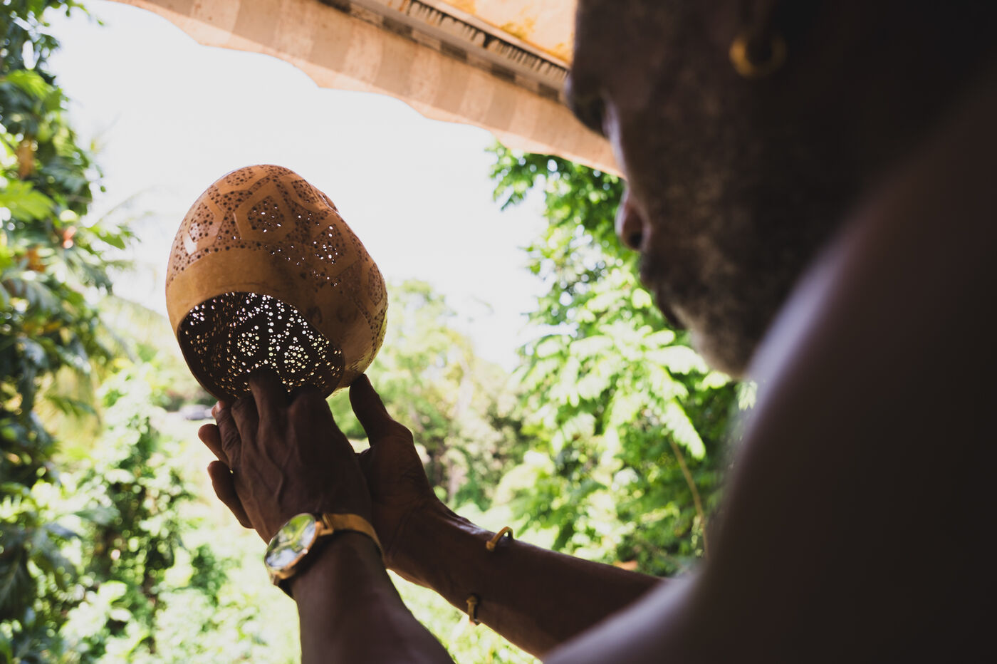 A member of the Cucurbitaceae family, the calabash is widespread in Guadeloupe. Cut in half, it is probably the oldest container in the West Indies, or kwi in Creole. This object was already used by the Amerindians and is still used in kitchens today. Decorative object, musical instrument, lamp, its uses are varied, and artists have no shortage of imagination when it comes to bringing it to light. Miky, awtist on calabash, Kimay création, passionately cultivates and works it in all its forms in her workshop in Sainte-Anne, Guadeloupe, from personalized objects to atypical lighting fixtures.