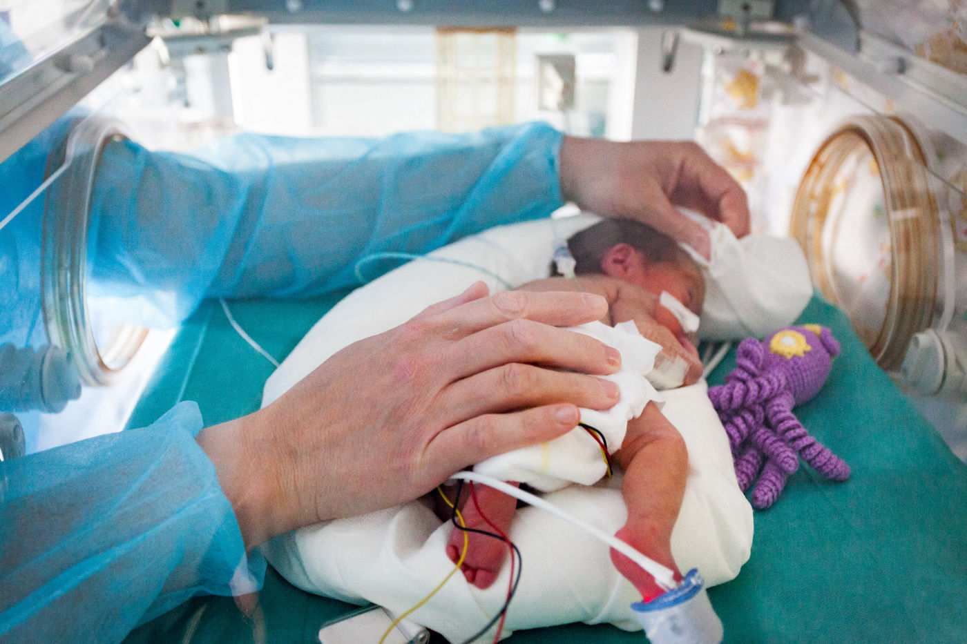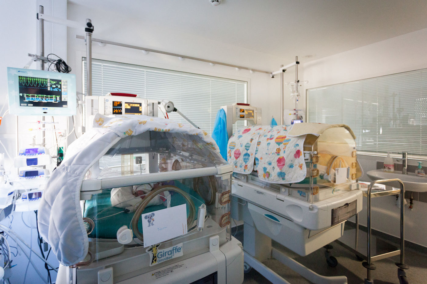 Dans ce service à part la lumière est plutôt diffuse pour ne pas perturber les enfants et le silence est roi. Sauf quand les alarmes des capteurs sur ces tous petits patients se mettent à sonner.
