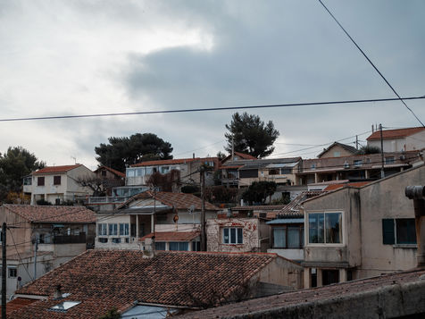 Des conteneurs entassés, une carcasse de voiture brûlée et des yatch qui regardent les voitures passer. Aller vers la calanque de Niolon, hors saison. Quelques chats, quatre jeunes qui vont pêcher, la baie pleine de déchets plastiques et cette eau translucide où l on peut voir les oursins. Sortir de la calanque et s enfoncer sur la falaise sur un chemin qui n?existe pas; l odeur des pins entêtante, le cri des mouettes qui nichent pas loin et l eau qui se fracasse contre la roche. Faire un tour aux calanques de Mejean a l'heure ou le soleil disparait derriere l'horizon.
