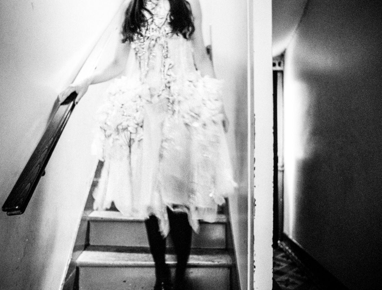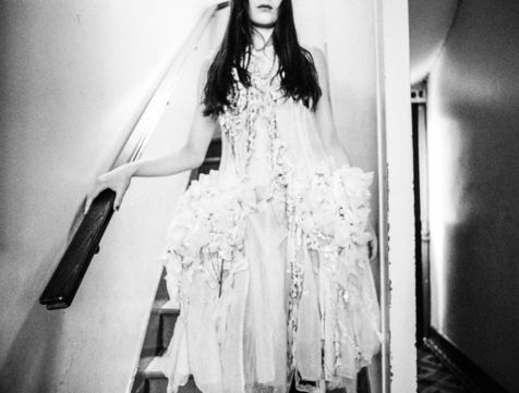 Photographies de commande pour la robe issue de la collection "whispering shadows" de la styliste Sandrine Philippe.