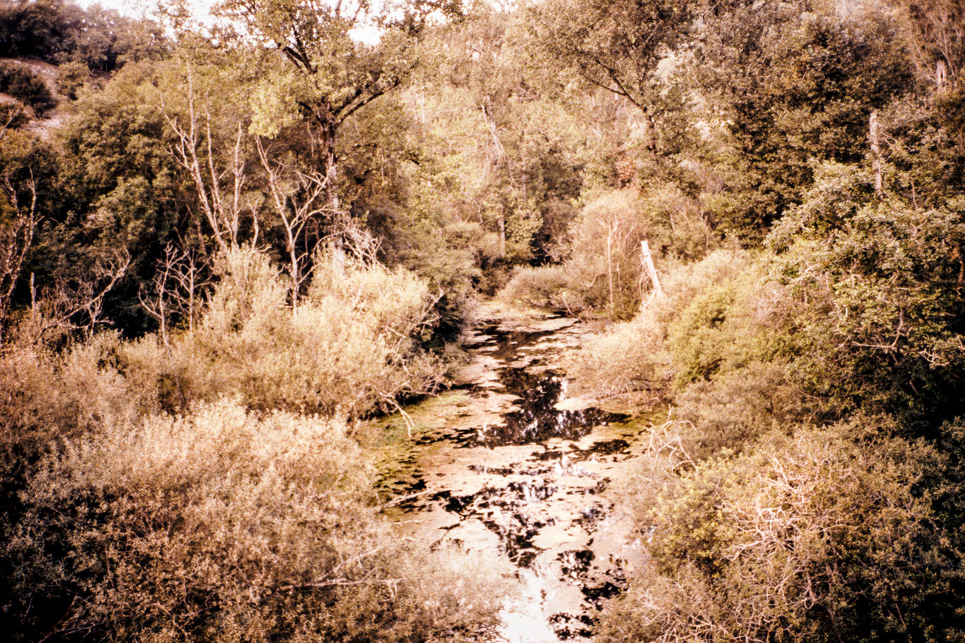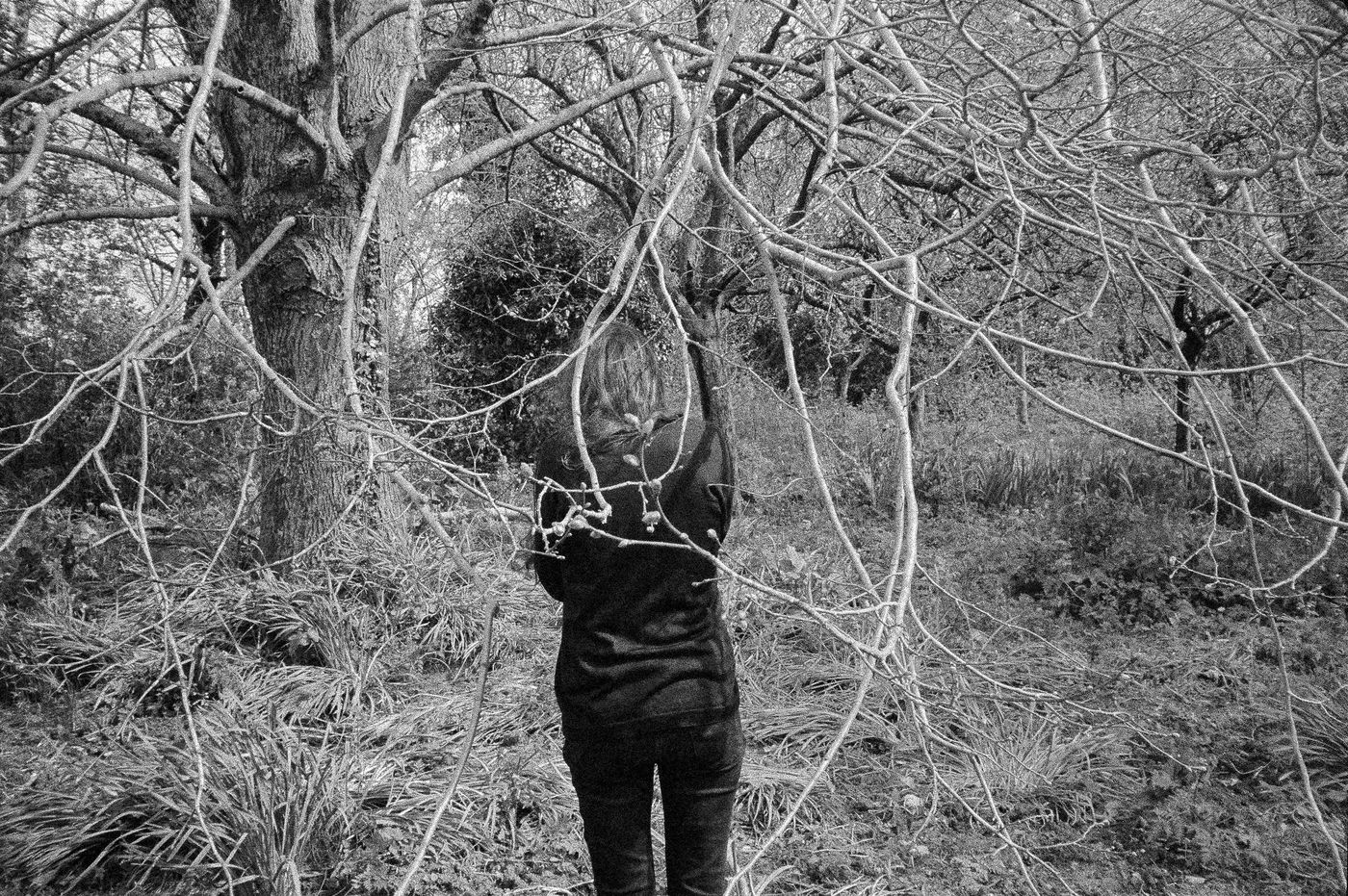 The back of the trees from one bank to another back and forth, eyes turned to the sky (against the sky, the tops) at full length their body to the ground shades of gray - something a bit bland - arms dangling, erring ways, and numbing halftone cries, memory of crying upon waking trees on land arms dangling, (on shooting, she often cuts off their arms or feet, uncertain holding, a little soft) she tells herself she’s always repeating the same little phrases, but speaks to them very little from one to the other - between two waters –
