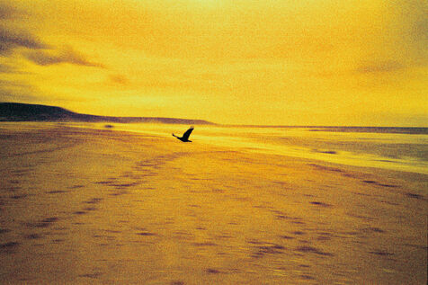 that bird in the Atlantic wind.? ( ? ) The sea is now on your left. You can hear its whisper intertwined with the wind. In great leaps it moves towards you; towards the hills of the coast.?