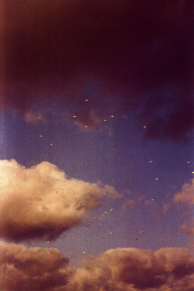 Drifting to the rhythm of solitary and intuitive walks, braving the elements and weather phenomena: sun, rain, gusts of wind, light, changing colours.