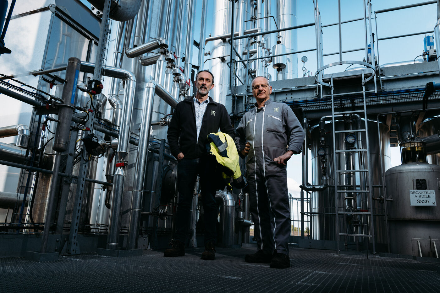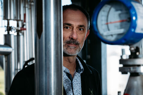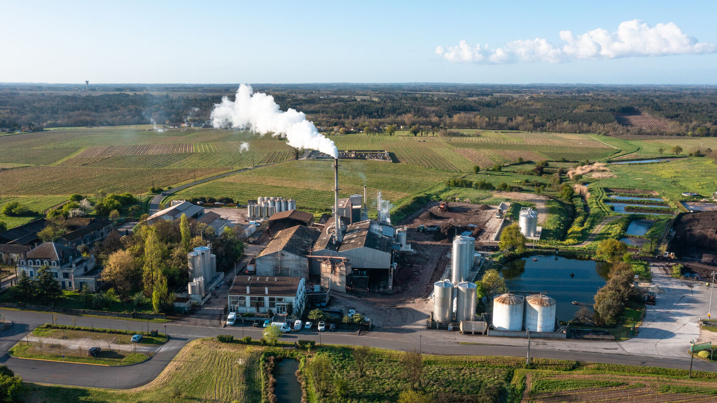 France, Val-de-Livenne, 2022-10-04, the director Grégory CROUVIZIER opens the doors of the wine distillery of Marcillac. A true ecological industry that recycles its residues, grape marc and wine lees are transformed into raw materials for the conception of products that are part of new economic circuits: grape seeds are used to produce oil, alcohols for biofuel, and grape pulp for organic fertilizers. Photograph by Claude CLIN / Hans Lucas.