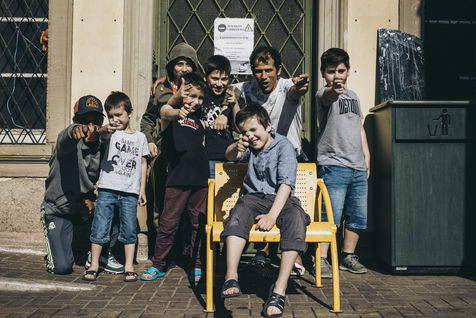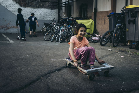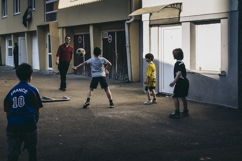Dans la cour de l'hôtel, des enfants improvisent une petite partie de foot avec Noureddine, le réceptionniste.