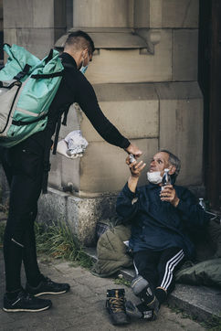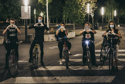 personnes sans domicile avant de retrouver les autres cyclistes pour la suite de la tournée. Partout, ils sont accueillis avec joie et les remerciements pour ce qu'ils font sont nombreux et sincères. La vie de SDF est encore plus difficile en temps de confinement. Alors des burgers chauds, un temps d'échange bienveillant, cela n'a pas de prix.