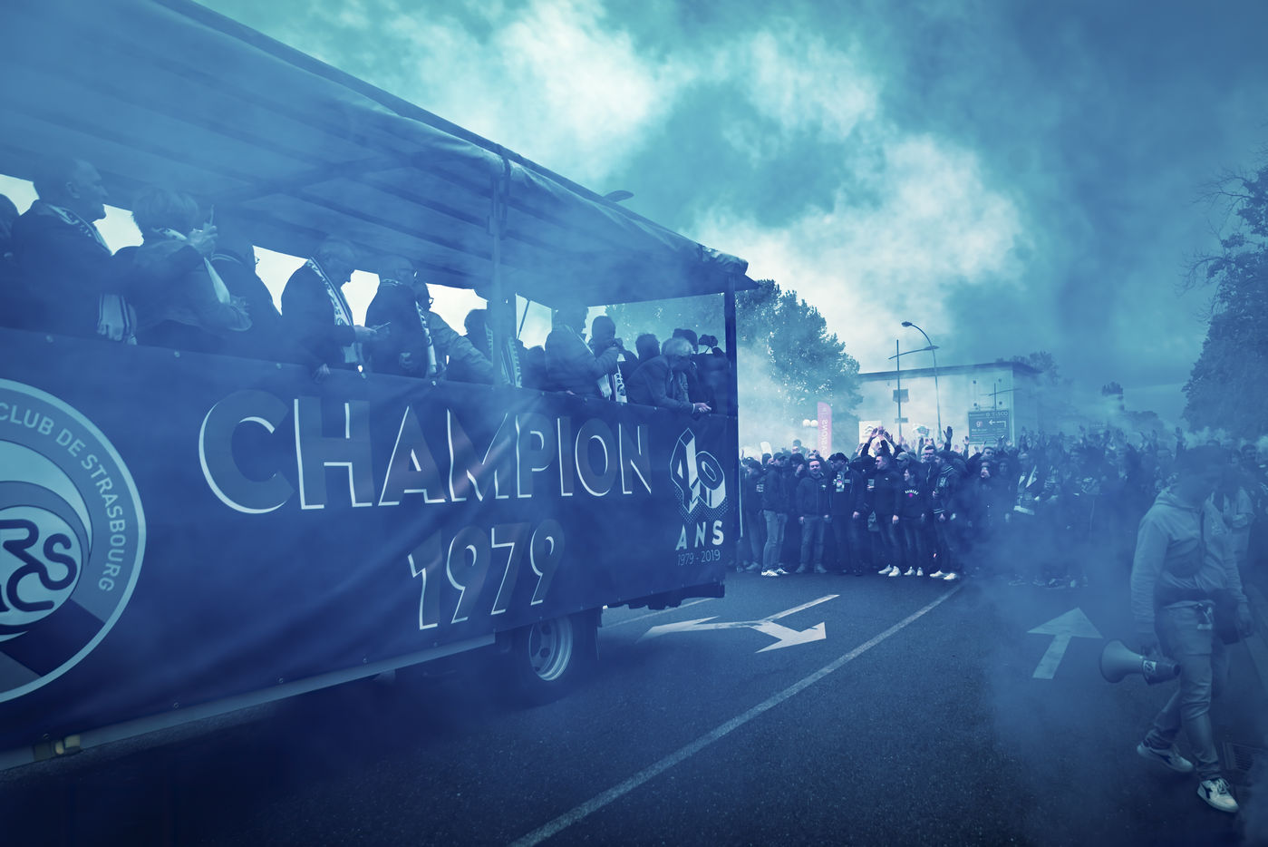 Before starting my collaboration with the Strasbourg magazine ZUT, I had never set foot in a football stadium during a Ligue 1 match. I was literally delighted by the power of the Strasbourg public's fervour. Here is a selection of highlights and encounters with the fans of the Racing Club de Strasbourg Alsace.