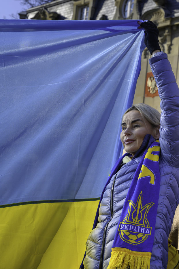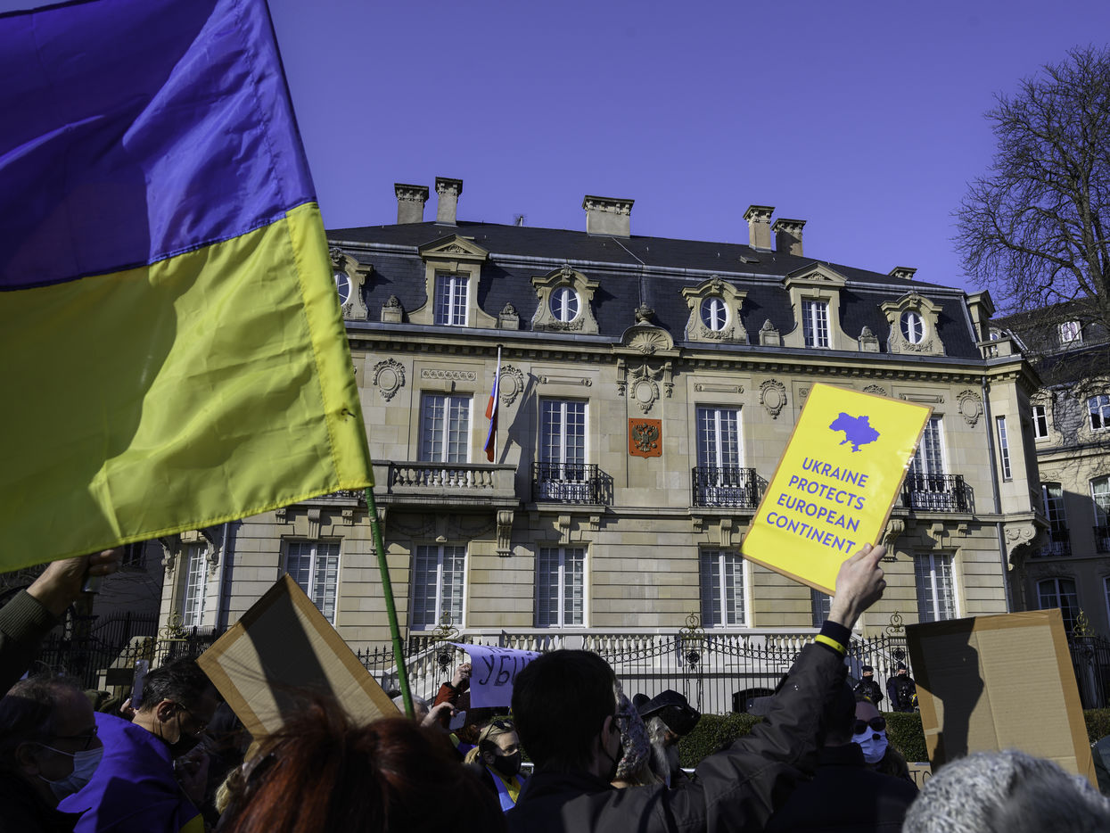 Rally in support of Ukraine in front of the Russian consulate in Strasbourg.