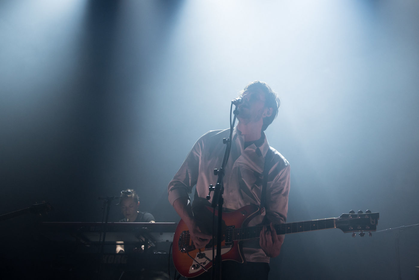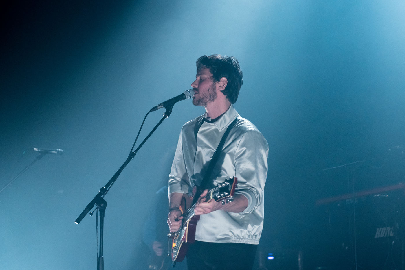 21/03/2018, Paris, France. L'auteur compositeur de 30 ans Gael Faure joue au café de la danse à Paris ce soir à l'occasion de la sortie de son troisième album, "Regain". Sur scène, il est accompagné d'Edouard Polycarpe et d'Arnaud Gavini.