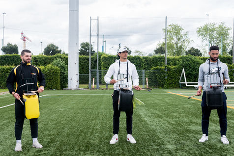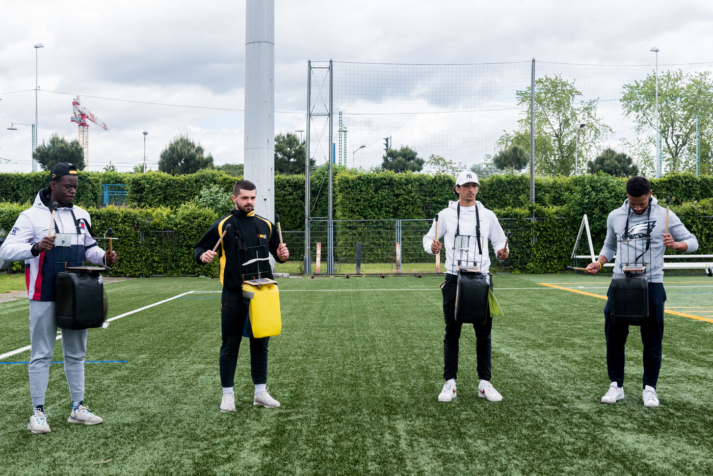 At the Geo Andre stadium in La Courneuve, the first of the 4 music workshops, "tambours battants", the musical comedy of Flash, the american soccer team of La Courneuve, was held today. As part of the preparation of the Cultural Olympics of 2024, the Flash and the associations Lutherie Urbaine 9.3 and the Opera de Bouche à Oreille are joining forces to build a musical "East Side Stories". Photograph by Constance Decorde / Hans Lucas