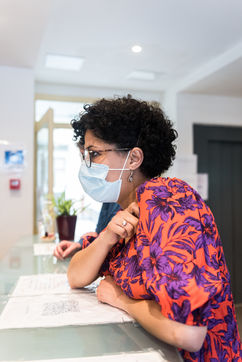 L'association Aurore a ouvert en novembre 2020 un nouveau centre d?hébergement d?urgence, la Maison régionale des femmes, financé à parts égales par l?Etat et la Région Ile-de-France. Ses 95 places sont destinées à des femmes isolées sans domicile et en extrême précarité. Ici, Armelle de Guibert, la Directrice générale adjointe de l'association Aurore. Photographies par Constance Decorde / Hans Lucas