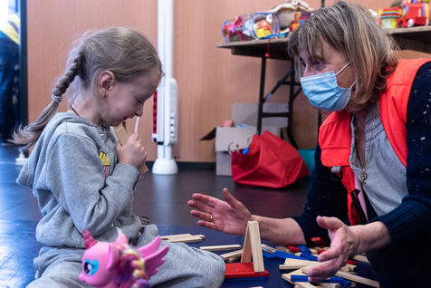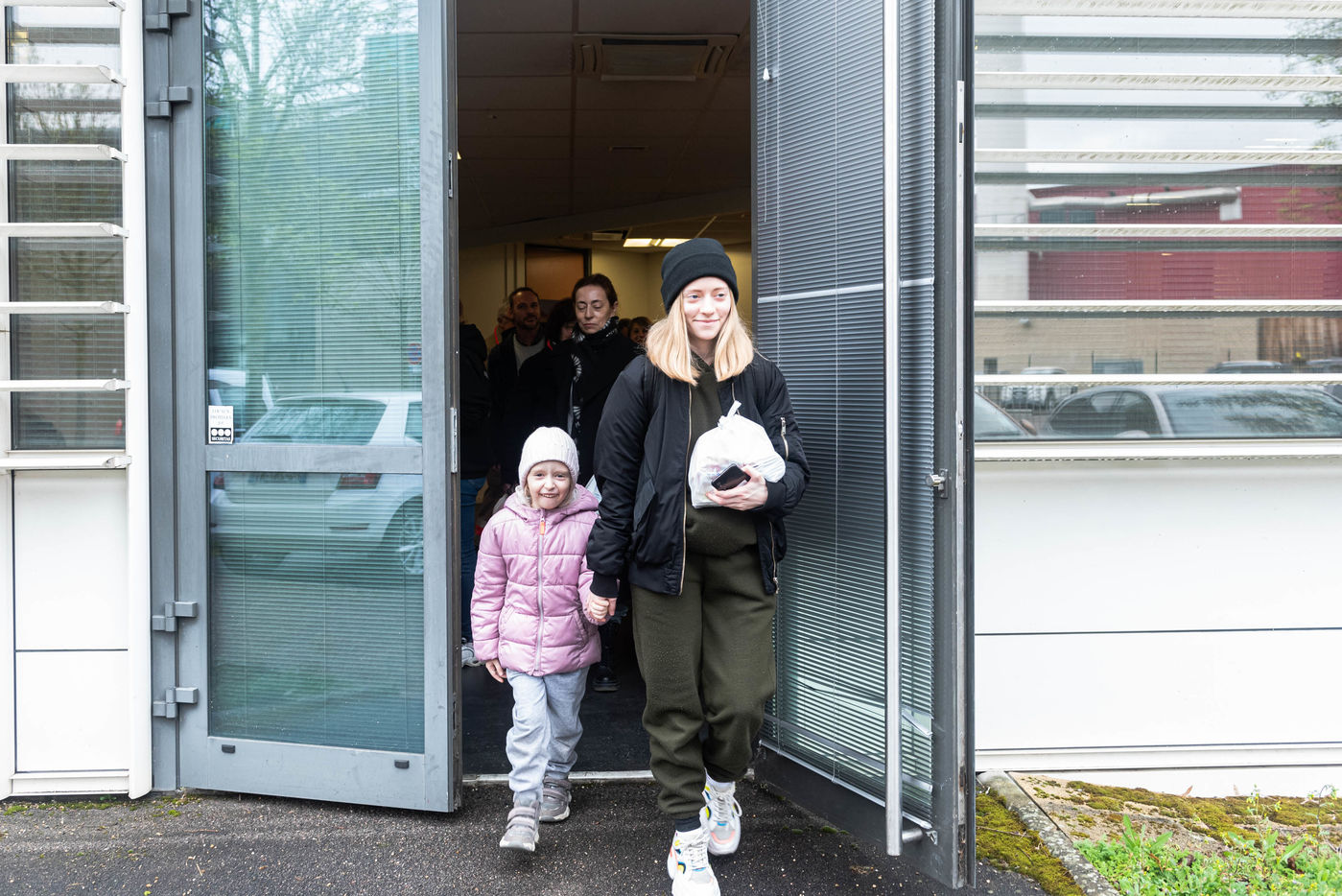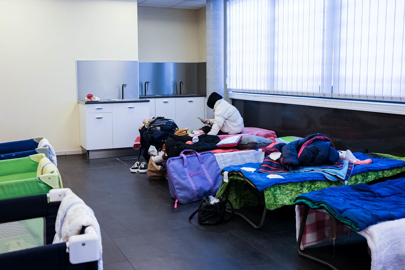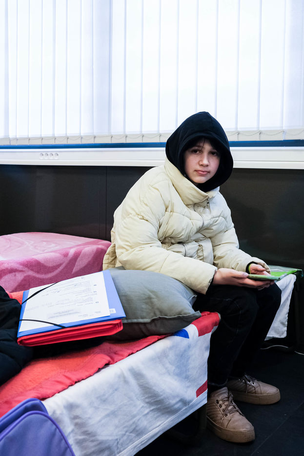 The French Red Cross has set up temporary reception facilities for Ukrainian refugees, a sort of "airlock", to allow them to deal with administrative procedures, but also to wash and rest before leaving for more permanent reception solutions. Photograph by Constance Decorde / Hans Lucas