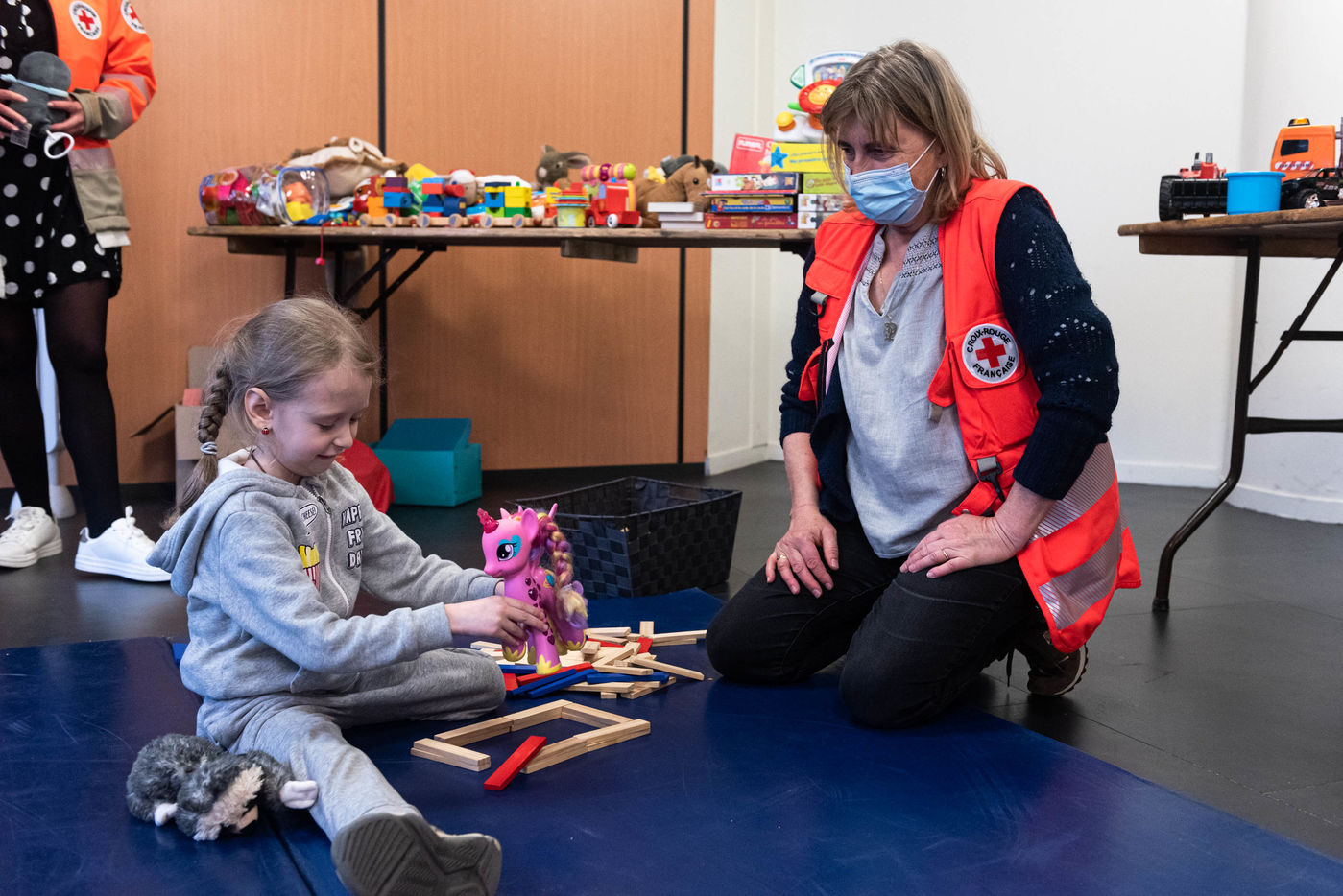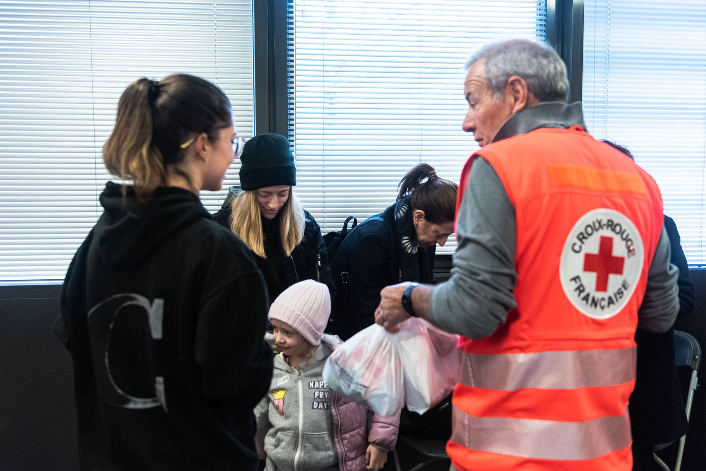 La Croix-rouge francaise a mis en place des dispositifs d accueil temporaires pour les refugies Ukrainiens, des sortes de sas, afin de leur permettre de s occuper des demarches les administratives, mais aussi de se laver et de se reposer avant de repartir vers des solutions d accueil plus perennes.