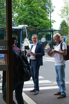 Nicolas Dupont-Aignan fait campagne dans a Yerres, ville ou il a ete maire de 1995 a 2017 et qui reste sa ville-vitrine, pour sa reelection en tant que depute de l Essonne aux elections legislatives du 30 juin et du 7 juillet.