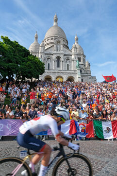 The Olympic Games women s cycling race passes in front of the Sacre-Coeur in Montmartre on 4 August 2024. The road cycling event took place on a 158km route that included some of the city s most iconic sites.