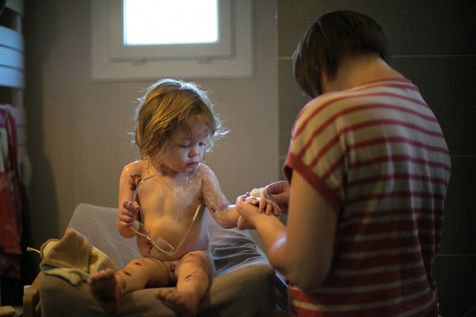 Le seul véritable traitement pour cette maladie, ce sont les soins de pansements pour désinfecter les plaies et aider à la cicatrisation. Des séances longues et parfois tellement douloureuses qu'Emilien est placé sous morphine.