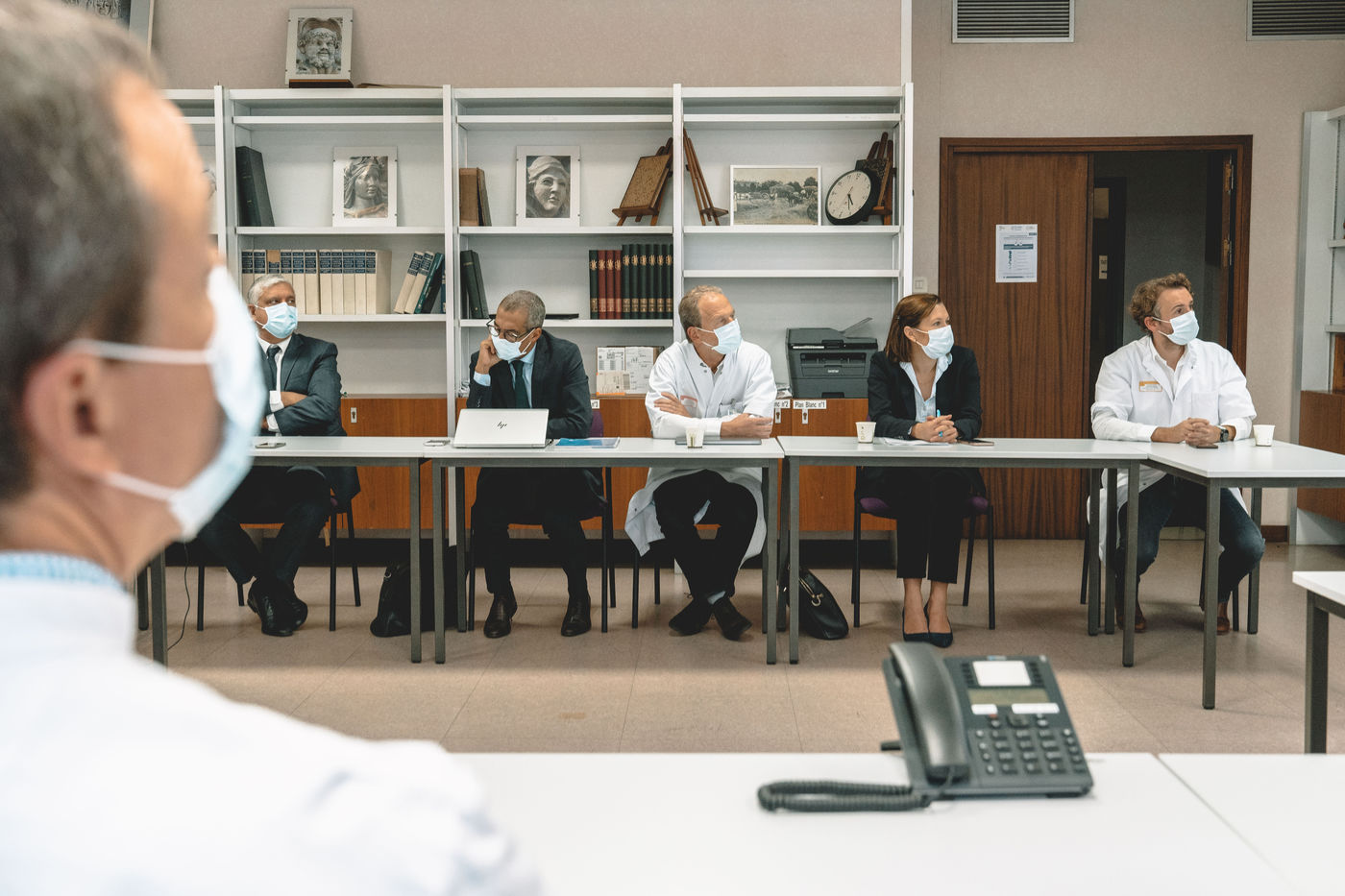Au sein de la cellule de crise du centre hospitalier universitaire CHU de Bordeaux Pellegrin qui gère l'évolution de la pandémie de covid 19 de la région Nouvelle-Aquitaine. Bordeaux, 13. Octobre 2020.