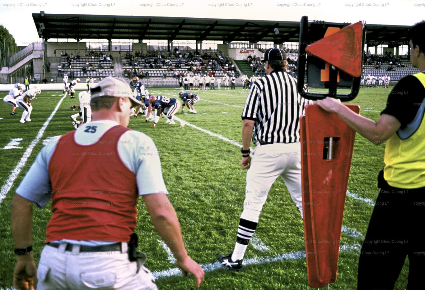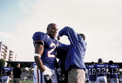 Chartres. Septembre 2005. Archives. Equipe de France de Football Americain pendant une rencontre de championnat contre l'equipe Anglaise.