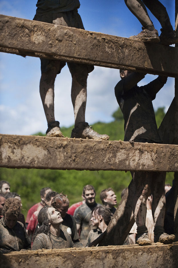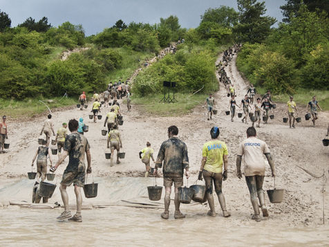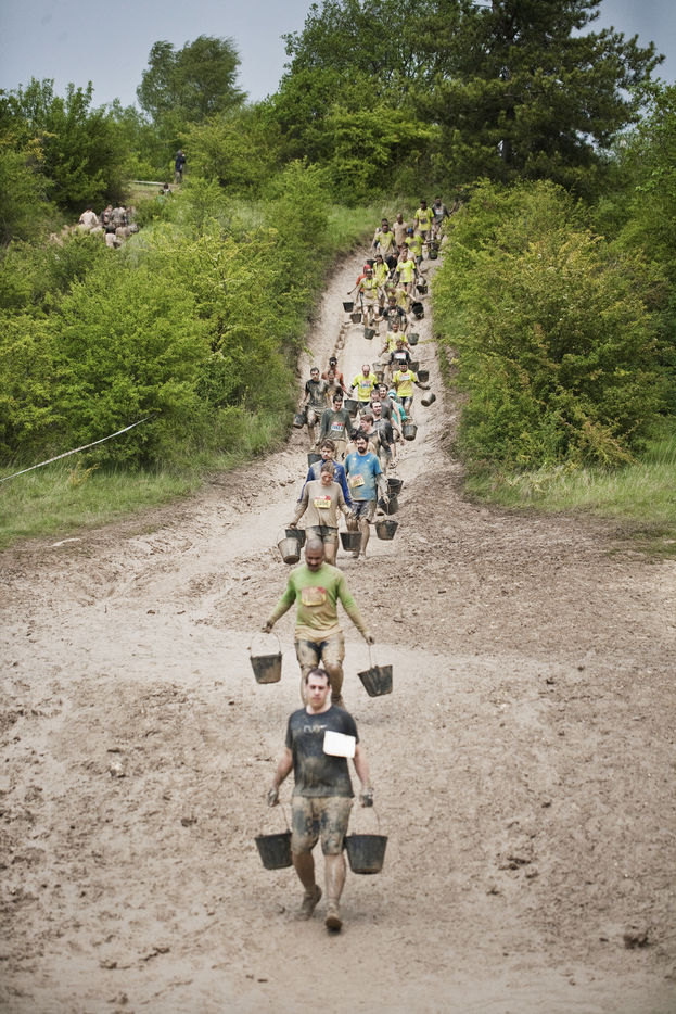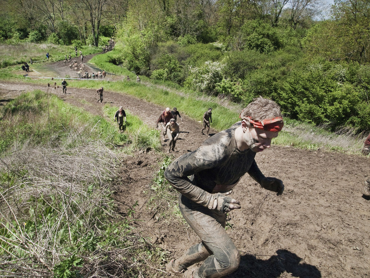 Mud day, an outstanding event. The Edition 2017 is coming soon. The next 29 and 30 april, the race will come back to the military camp of Beynes with more participants. Here is a review of the edition 2014 : Mud day is a a run of 13 km, real challenge with more 20 obstacles worthy of assault course. From 8 to 11 may 2014, more than 22000 persons participated to the edition. Crawling under barbed wire, climbing a muddy hill 10 meter feet, swimming in a 4 celcius degree cold water... For each team of 4 people, the point is not to be the best and win the race, but push the limits claim the organizers of the second annual event. Here is a report deep in the heart of the even. All the runners are so different revealing a large spectrum : man, woman, young and older, bunch of friends, people with a keen interest in sport, students, business executive, serviceman etc. The motivations are personal and differ from everybody : regressive pleasure to dive in the mud, pushing his own limits. All this barnum takes place in a festive and popular ephemeral village whith good atmosphere between bier, dj sets and food trucks. Fest and extrem effort under a certain fake sensation of personal and transgressive fulfilment : a cocktail skilfully gauged, fashionable... Military camp of Frileuse. Beynes, Yvelines - France (2014).