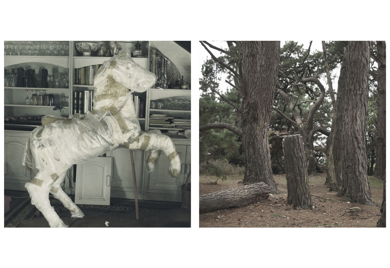 Un livre ouvert, où les images sont associées, une mise en page sous forme de diptyque. Les images sont évidemment disponibles seules.