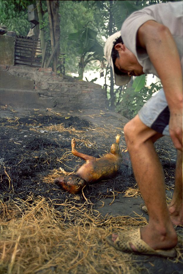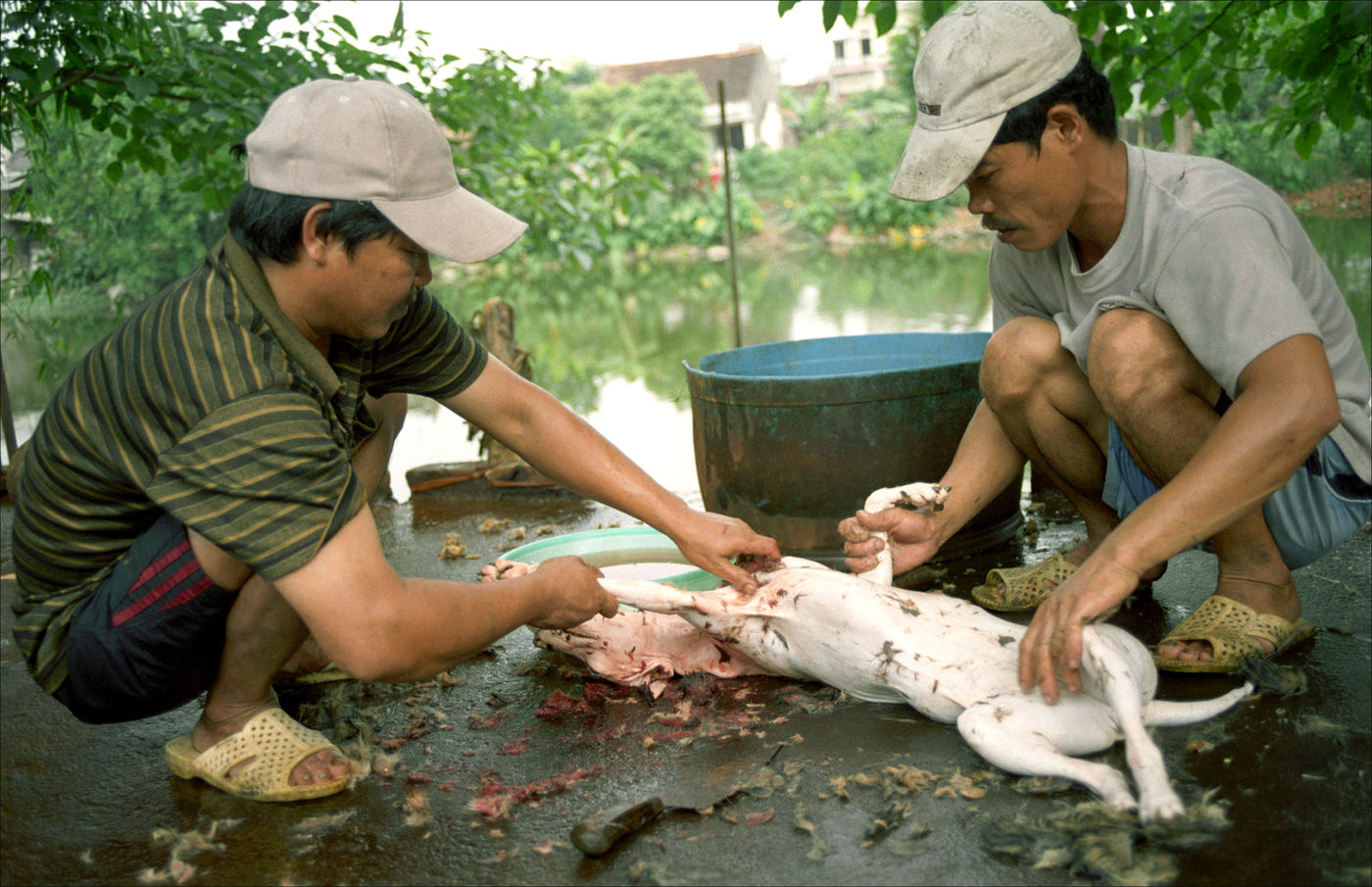 This report was made in 2006 in a village near Hanoi (northern Vietnam). You can see the preparation and trade of dogs until the arrival at the table. In addition to the disturbing aspect that could emerge, this report allows us to question our relationship to food, to our own cultural traditions and those of other countries. Would we be so shocked if it were pictures of pigs or oxen?