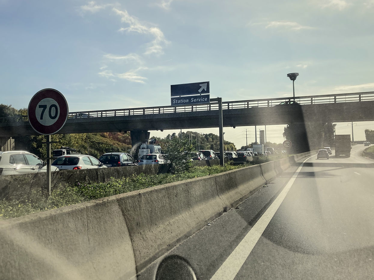 France. Boissy Saint Léger. 2022-10-11. Queue at gas stations due to fuel shortage. The strike of the employees of TotalEnergies blocks the refineries. To cope with the gasoline shortage that affects the capital, motorists are arming themselves with patience at gas stations still supplied with fuel. Sometimes, it is necessary to go to the suburbs to refuel. 30.8% of service stations in France are short of at least one fuel, according to the Ministry of Energy Transition. Hauts-de-France and Ile-de-France remain the most affected regions. Photography by Chau Cuong Le / Hans Lucas.