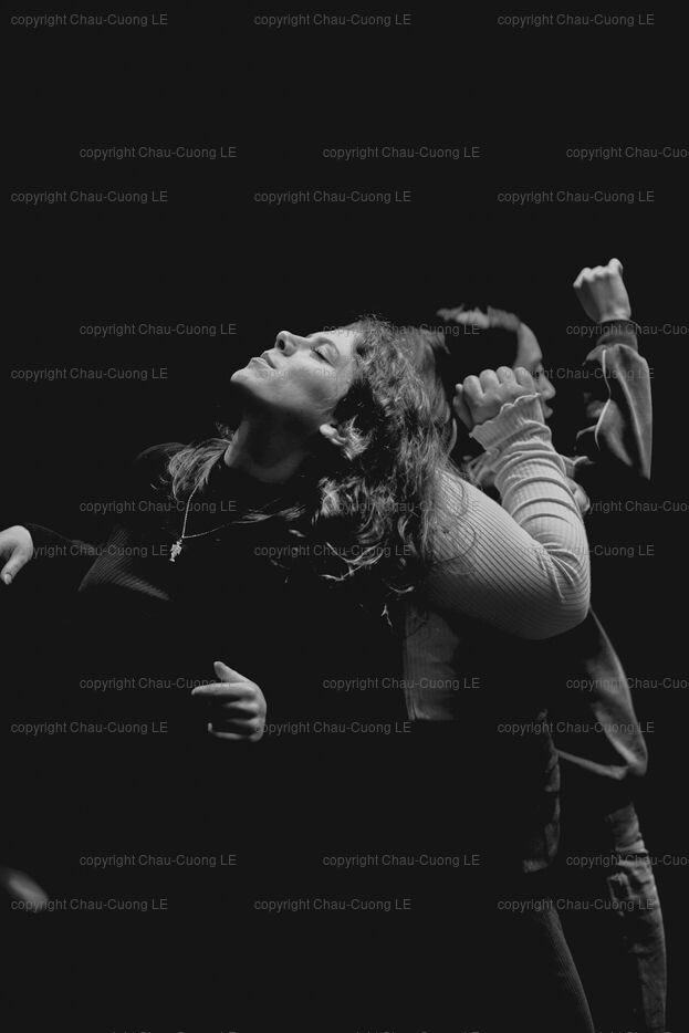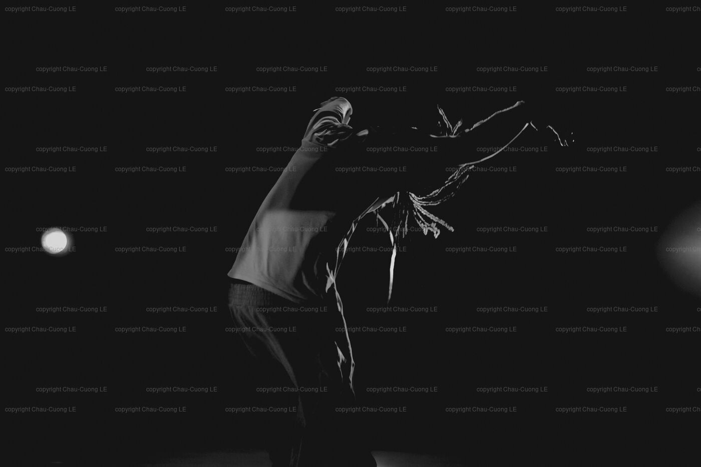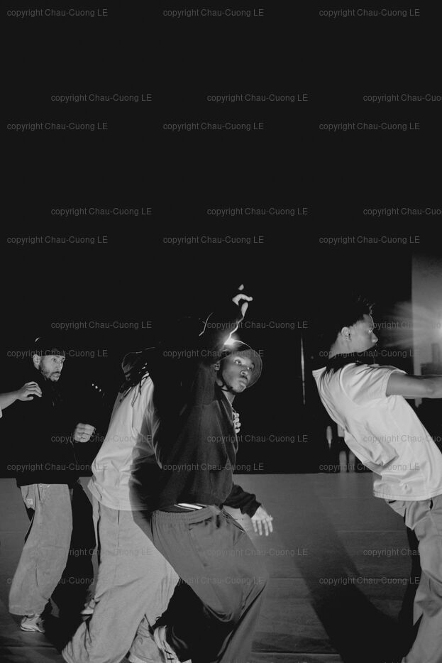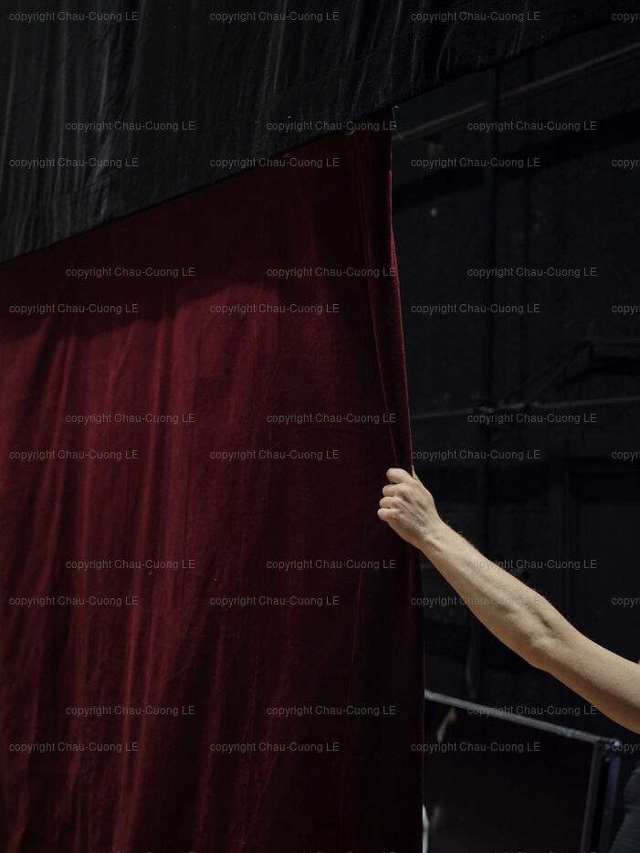 France. Tremblay in France. 2023. The Theater Louis Aragon (TLA) fell in love artistically and humanly with the project "To the extent of the silences that we leave behind us..." by Chau-Cuong Le, and gave him carte blanche in inviting people to share moments from the life of the theater in Tremblay, France. From March to July 2023, Chau-Cuong Le met and documented in images La Belle Jeunesse, the work of choreographers Khoudia Toure, Melanie Perrier and Lumi Sow, the TLA team, the spectators, Voile les femmes, the Team of France in Contemporary Dance... Part of his images illustrate the 2023-2024 season brochure of the Théâtre Louis Aragon. A special edition comes as a complement to discover his work with the TLA. It was a question of taking into account the values defended by this national scene: culture, openness to the world, brotherhood, sharing, proximity, transmission, link to nature, body and movement, gesture, intergenerational, youth. Here is an overview transcribing a bias where the evocation of bodies and movement in chiaroscuro were favored during different workshops and key dates in the life of the theater. The vision in metallic gray is here covered in darkness to participate in this desire to approach in detail, to attract attention by observing a look, a gesture, a flutter of eyelashes...