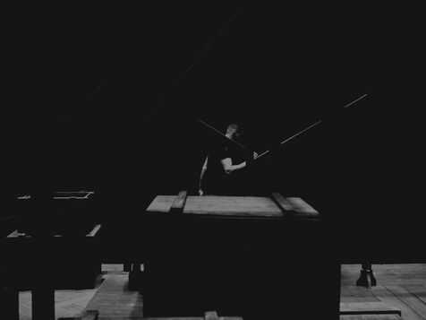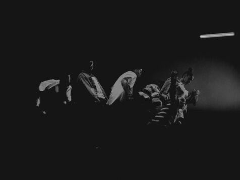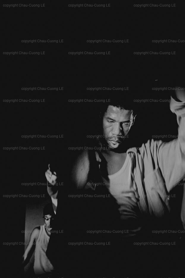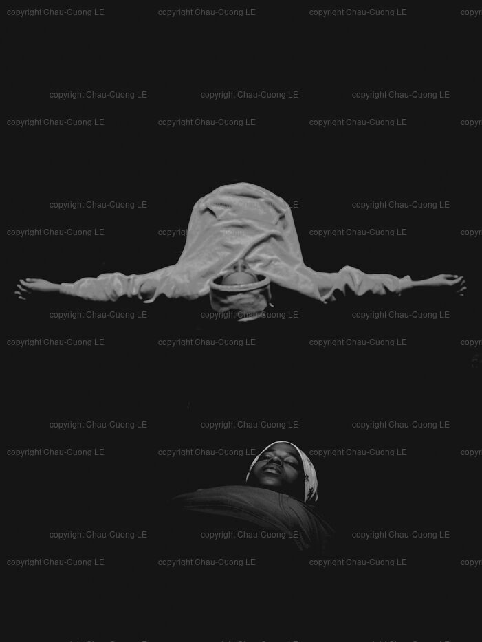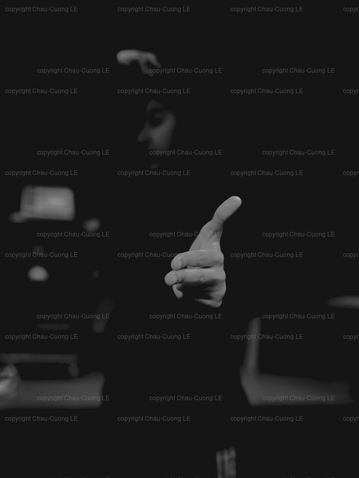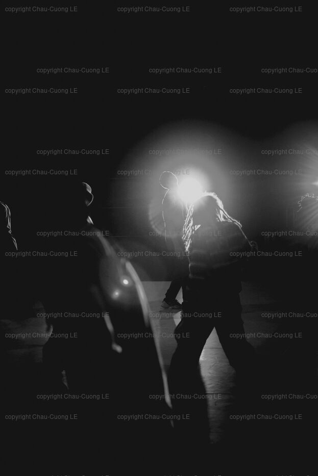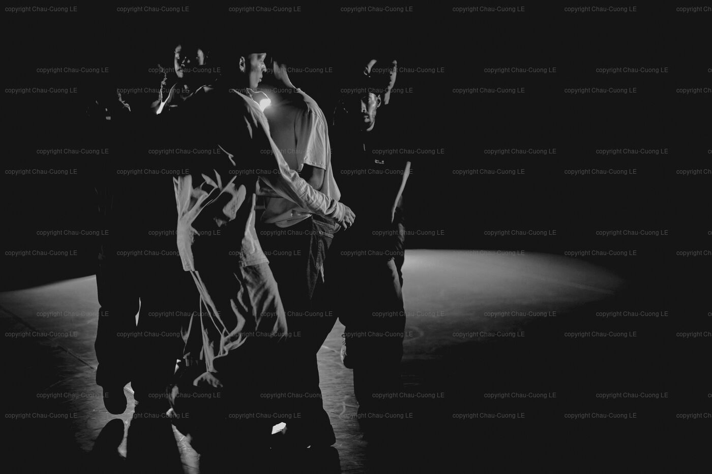 France. Tremblay in France. 2023. The Theater Louis Aragon (TLA) fell in love artistically and humanly with the project "To the extent of the silences that we leave behind us..." by Chau-Cuong Le, and gave him carte blanche in inviting people to share moments from the life of the theater in Tremblay, France. From March to July 2023, Chau-Cuong Le met and documented in images La Belle Jeunesse, the work of choreographers Khoudia Toure, Melanie Perrier and Lumi Sow, the TLA team, the spectators, Voile les femmes, the Team of France in Contemporary Dance... Part of his images illustrate the 2023-2024 season brochure of the Théâtre Louis Aragon. A special edition comes as a complement to discover his work with the TLA. It was a question of taking into account the values defended by this national scene: culture, openness to the world, brotherhood, sharing, proximity, transmission, link to nature, body and movement, gesture, intergenerational, youth. Here is an overview transcribing a bias where the evocation of bodies and movement in chiaroscuro were favored during different workshops and key dates in the life of the theater. The vision in metallic gray is here covered in darkness to participate in this desire to approach in detail, to attract attention by observing a look, a gesture, a flutter of eyelashes...