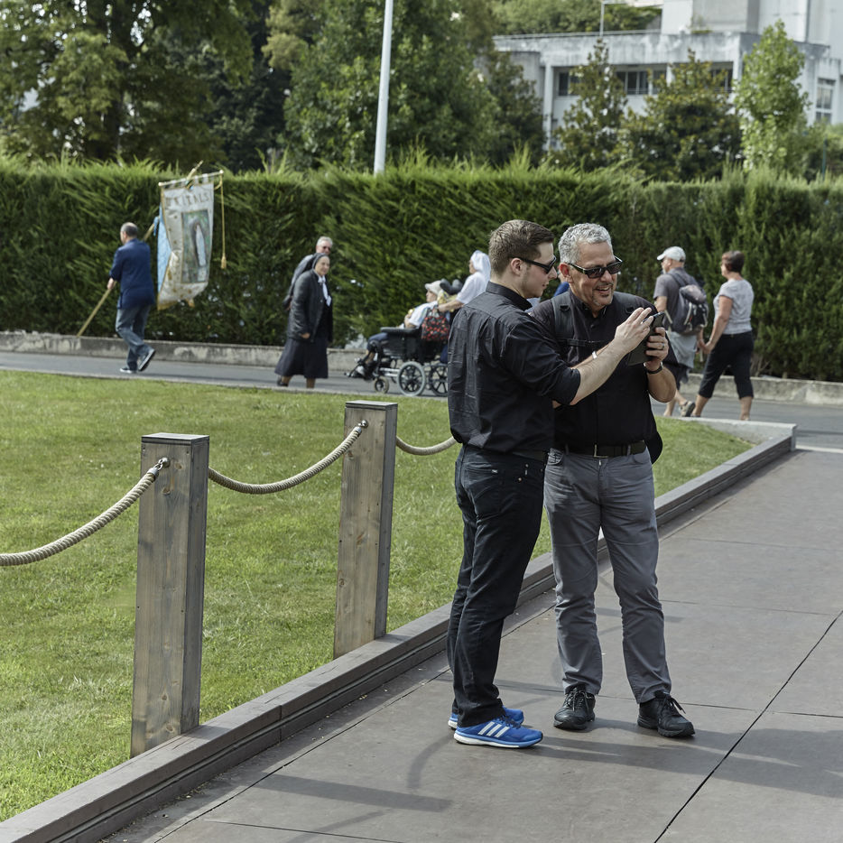 Lourdes, a place of catholic pilgrimage. Reporting. Since the apparitions in 1858, Lourdes takes in and welcomes every year 6 millions of pilgrims or visitors from all around the world. 60 000 sick or invalid people are among this pilgrims. Lourdes is the third place of catholic pilgrimage after Vatican and the Basilica Notre-Dame of Guadalupe in Mexico. At the approach of the feast of the Assumption, the arrival of the pilgrims become intensified. Lourdes, 9th august 2016.