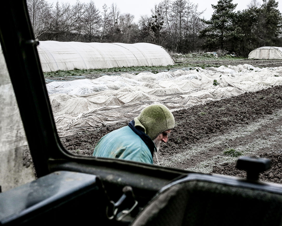 The land around the Moulin de Braux does not have the qualities required for market gardening. The earth is clay and sticky, hard to work. Today, market gardeners prefer to settle in the Val de Saône where the soil is more sandy, loose. Luc has been growing vegetables since the early 1980s and is one of the pioneers in organic farming. For Luke, cultivating is a real commitment and he has an unwavering faith in work. His way of working has remained quite archaic, weeding by hand, we also harvest everything manually, new technologies in organic farming (thermal weeding, agricultural machine for harvesting certain vegetables) do not seem to have arrived until Moulin de Braux. Probably by choice at the start (because intensive organic farming has other environmental impacts, chemical weeding killing soil biodiversity ...) and ultimately constrained by the vicious circle of relentless and hard work in order to produce sufficient quantity and satisfy demanding customers. Luc usually receives a large number of WWOOFers but today they are rare at the Moulin. (WWOOF - "World-Wide Opportunities on Organic Farms" - is a global network of organic farms. The hosts offer to welcome WWOOFers to share their knowledge, know-how, daily life and activities with the possibility for the latter to be housed and fed). Gérald is hired full-time at the Moulin, in addition to a second half that changed during the year. He sleeps there all week because he comes from far away. The arrival of Isabella, an 18-year-old German girl who came as part of Franco-German ecological volunteering to spend a year as a volunteer at the Moulin de Braux, was of great help to the Mill. Isabella started her year of volunteering in September 2015 and left in September 2016. This initiation experience was difficult even if she took up the challenge that she had set herself. For the anecdote, she was spotted at the height of her 1m85 to do modeling, she finally refused this offer and continued her work as an apprentice vegetable farmer in organic farming ...! This place is atypical and it attracted me from the start because despite the fact that it is completely isolated in rural areas, we come across all kinds of nationalities, we speak a little French, a little English ... We lead there a spartan, almost monastic life where alcohol and tobacco are prohibited and where every day the rituals of work and life are alike and repeated, only the capricious weather can sometimes change the course of things. This mode of production does not leave much choice, everyone is forced and forced daily to do more than their quota of hours. The asceticism that reigns there creates a very special atmosphere that I tried to capture as closely as possible. Finally, this exploitation is far from intensive production methods which also offer lower costs and allow more people to access organic products (with other drawbacks elsewhere). Finally, this also raises the thorny question: could we feed the planet with this approach to organic farming? The subject divides especially today when some want to ban glyphosate while others fear the extinction of farmers slowly ...