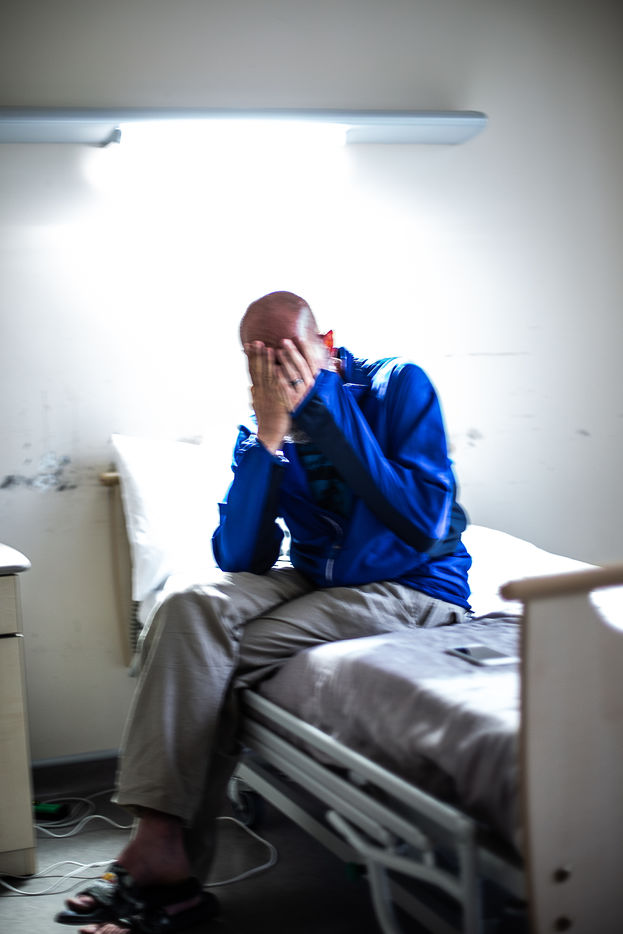Portrait anonyme d'un policier ayant fait une tentative de suicide avec son arme de service. Actuellement à la Clinique du Val Dracy dans l'unite "La robe et l'uniforme", unite spécifique pour tous les professionnels issus du Ministere de la Justice, du Ministere de l'interieur et du Ministere de la défense.