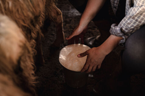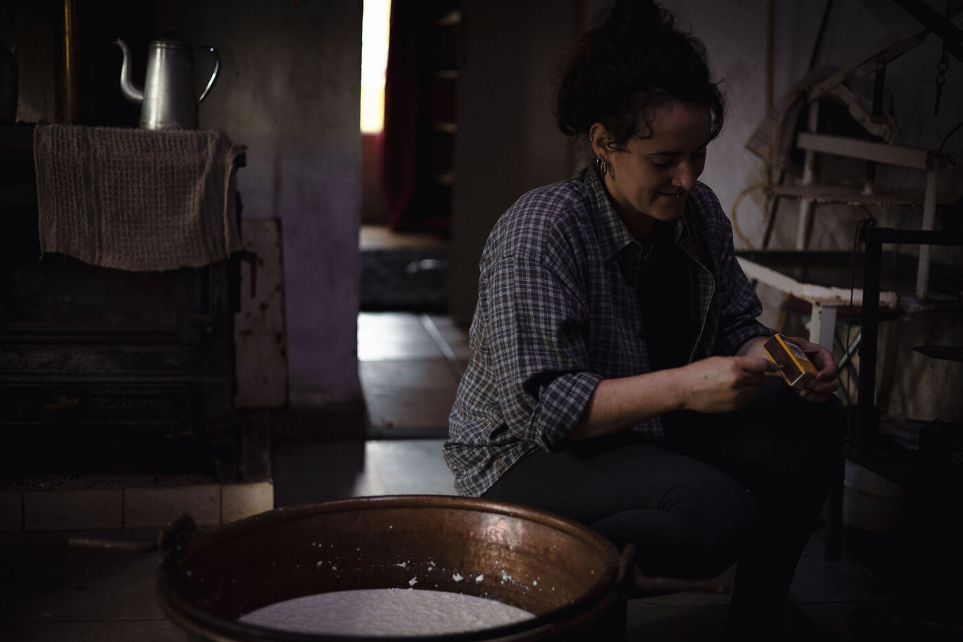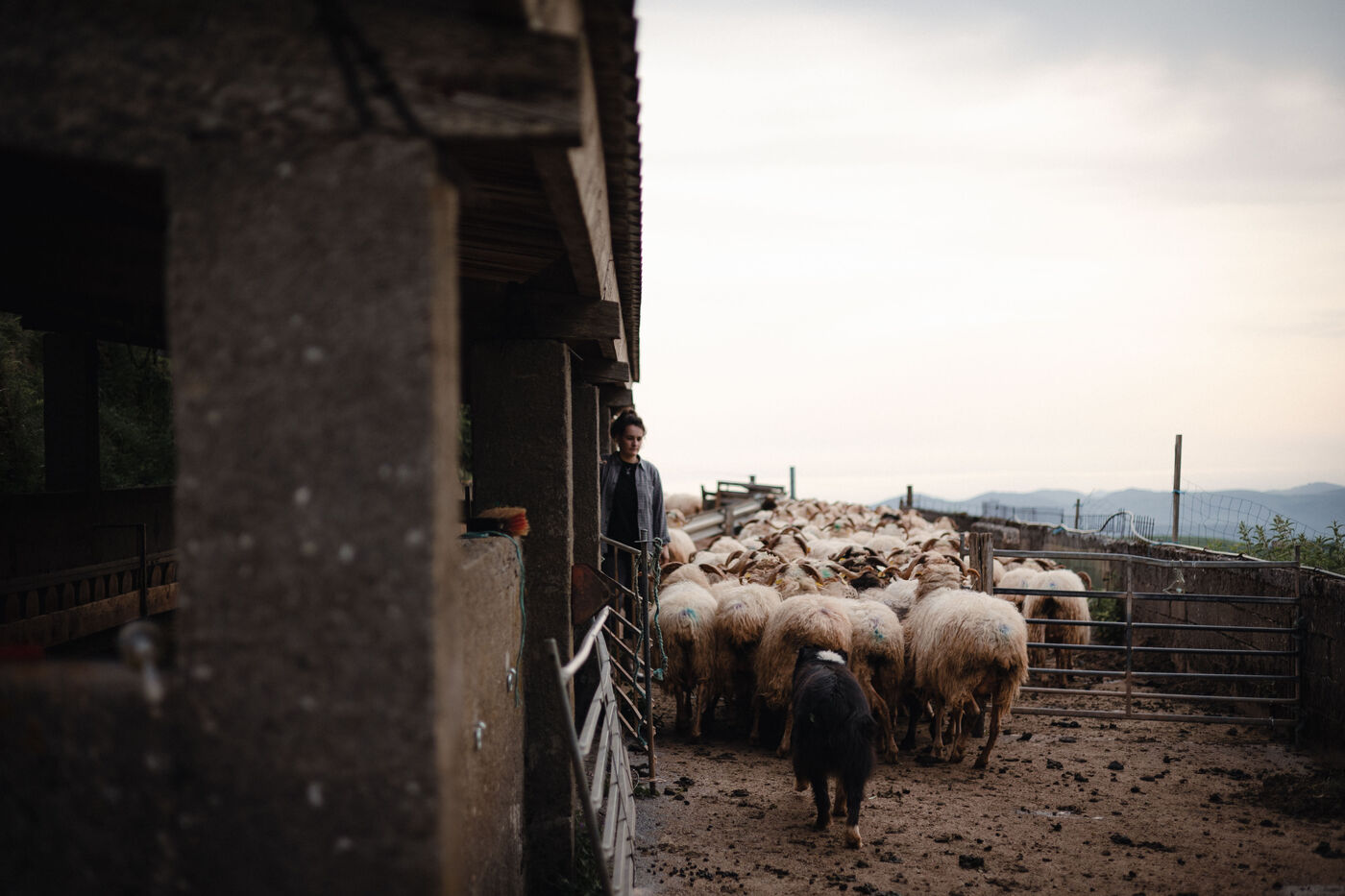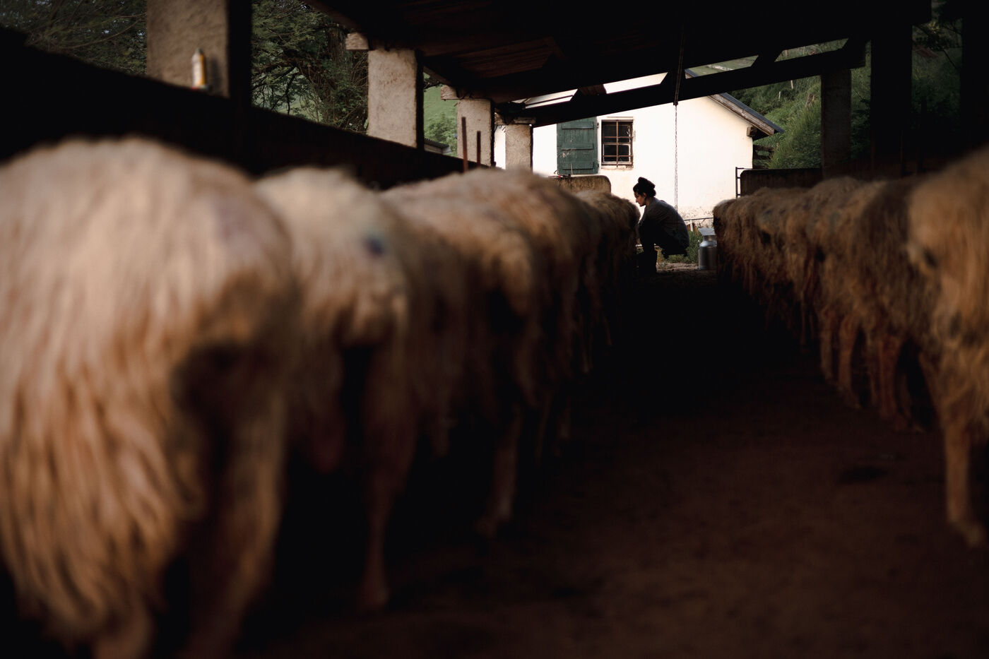 At the time of this series, Claire, a very experienced young Basque shepherdess, is part of the replacement service. That is to say, she replaces an absent or sick shepherd. In this case, she replaces a shepherdess who is on maternity leave. But that does not change the daily work that must continue to be done with the ewes. It is June, the herd is in the mountain pastures, at an altitude of about 1,000m. Every morning, the sheep must be gathered at the coral and milked. In the mountains, milking is done by hand. The milk is poured, as it is, into a can after being filtered to stop dust, twigs and other impurities.