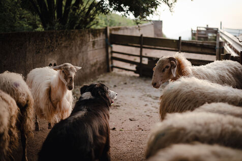Lorsque je retrouve Claire à sa cabane, il est environ 5h30. Nous sommes début juin. Il faut doux et le ciel est voilé, diffusant sur toute chose, une lumière diaphane. Et tant mieux, car la veille, il faisait très chaud et la lumière était très vive. La montagne est calme, hormis le son des cloches des brebis et le chant de quelques oiseaux qui se lève dans les bosquets non loin de là. La robe des brebis est d'un joli rose poudré : elles passent la nuit dans une grotte au-dessus, où le sol est en terre rouge.