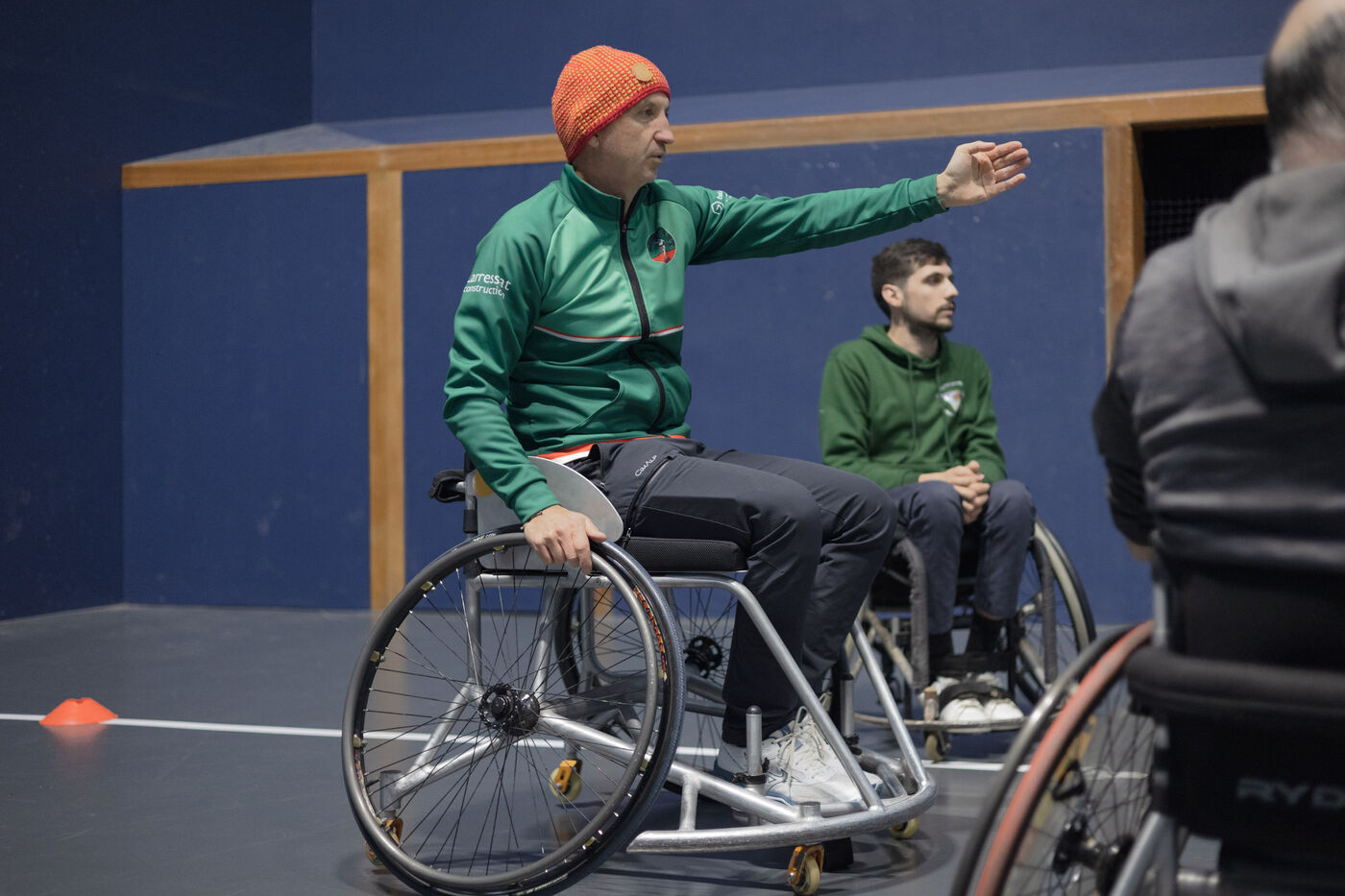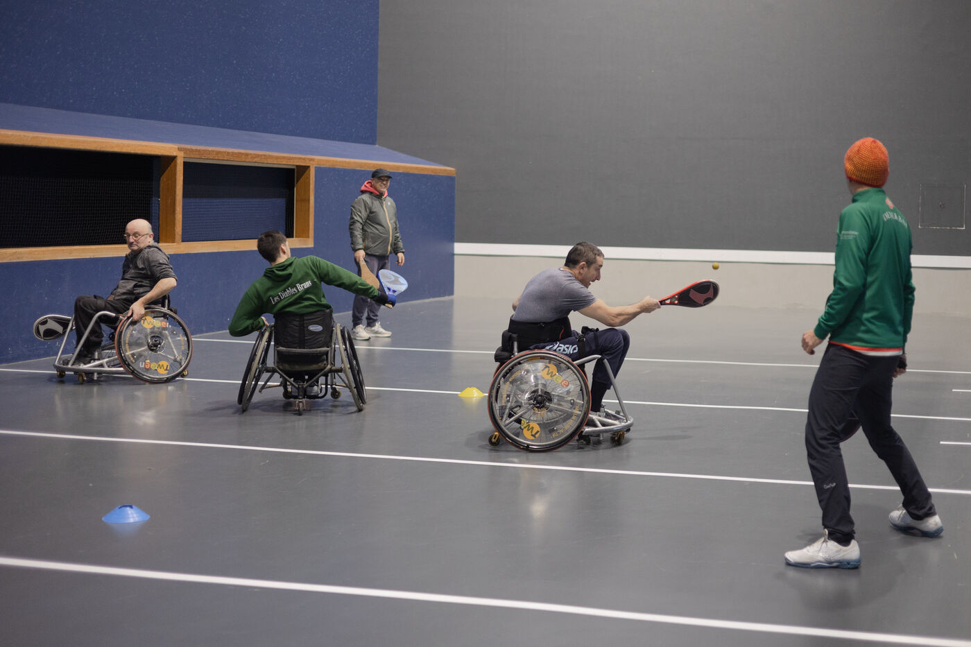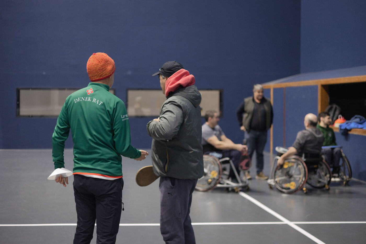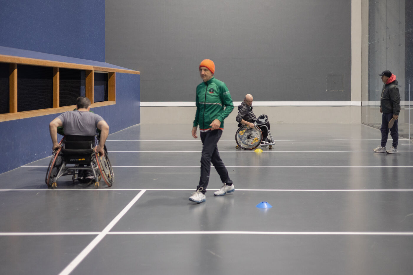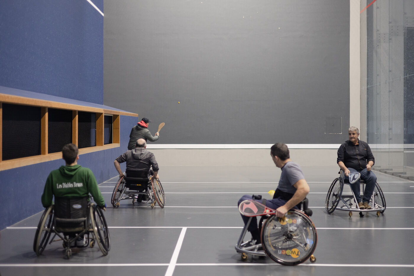 oldy… A small village in the Basque Country, more than an hour from the big cities on the coast and, what’s more, away from the main roads. On this Tuesday afternoon in December, the village, which has about 550 inhabitants, is deserted. Just a few cars in front of the Hoxari trinquet, some of them displaying a card with the handicap logo. Tuesday is training day. At the wall on the left of the village, a handful of people meet around 3pm for a two-hour session: first, a warm-up, then speed and agility exercises and finally, a game.